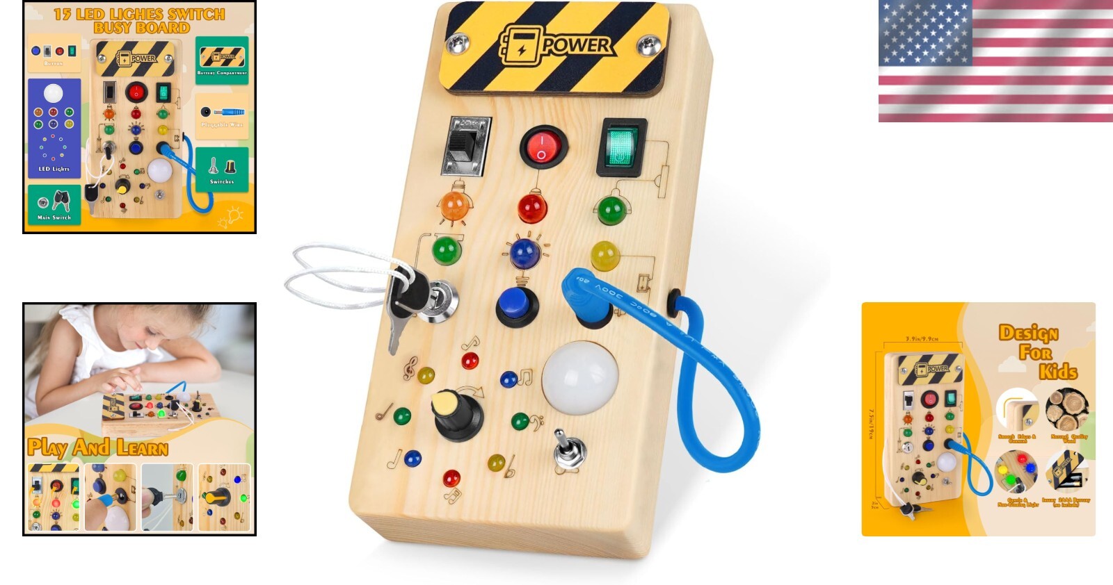 Handcrafted Montessori Busy Board for Ages 1 , 8 LED Lights for Sensory Learning