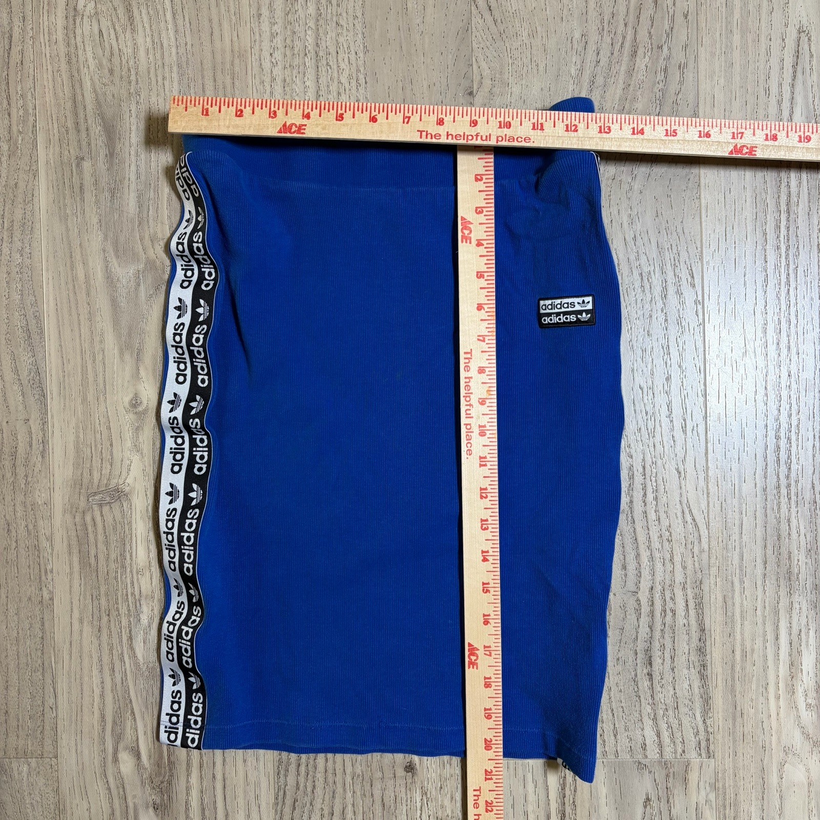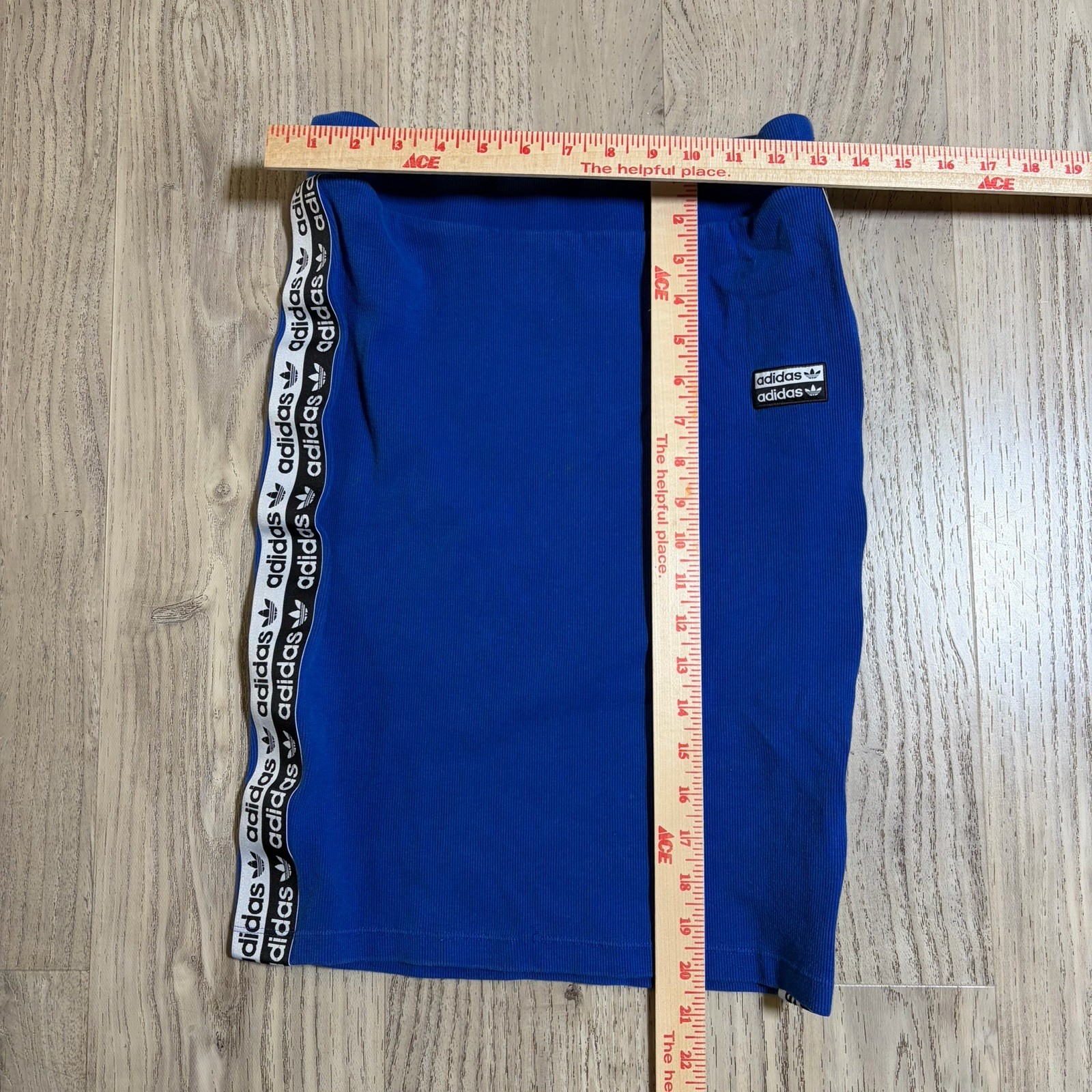 как выглядит Adidas Originals Womens Skirt, Royal Blue Medium Y2K Stretch Stripe Logo Trend фото