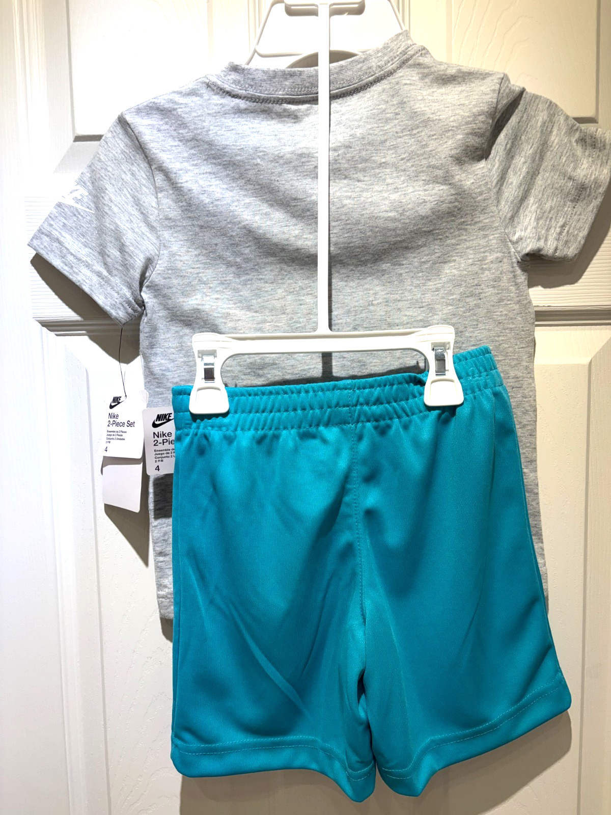 Nike Futura Boys Sz 4 Logo 2 Pc Shorts Set Outfit Grey/Green 40 NWT