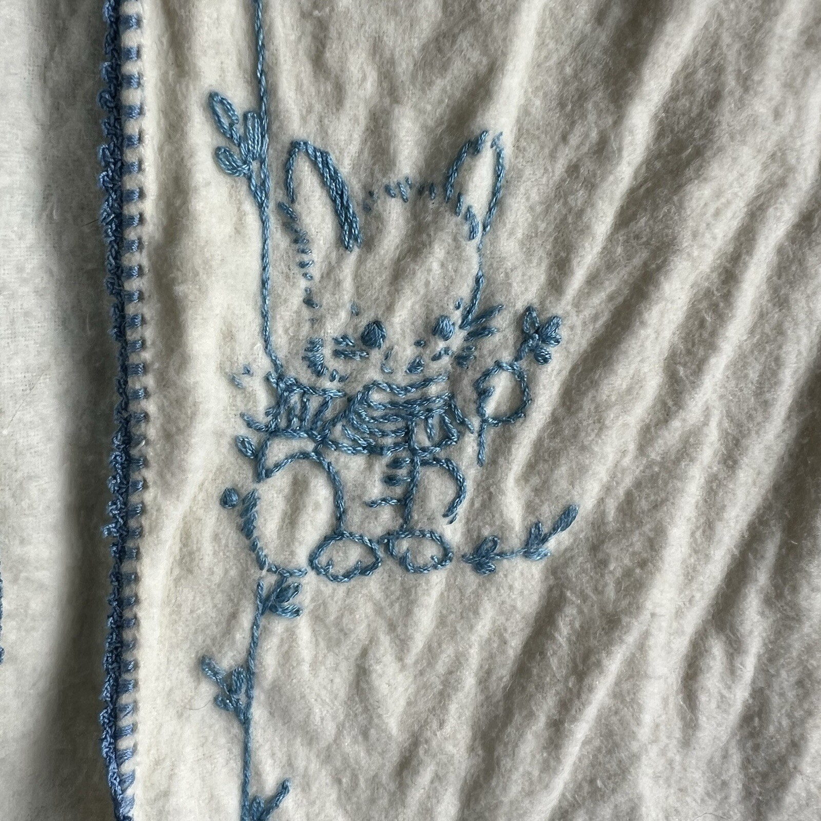 VTG 60's Baby Robe Blue Tie Front Embroidered Clean