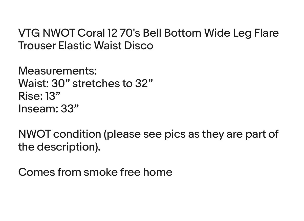 как выглядит VTG NWOT Coral 12 70s Bell Bottom Wide Leg Flare Trouser Elastic Waist Disco фото