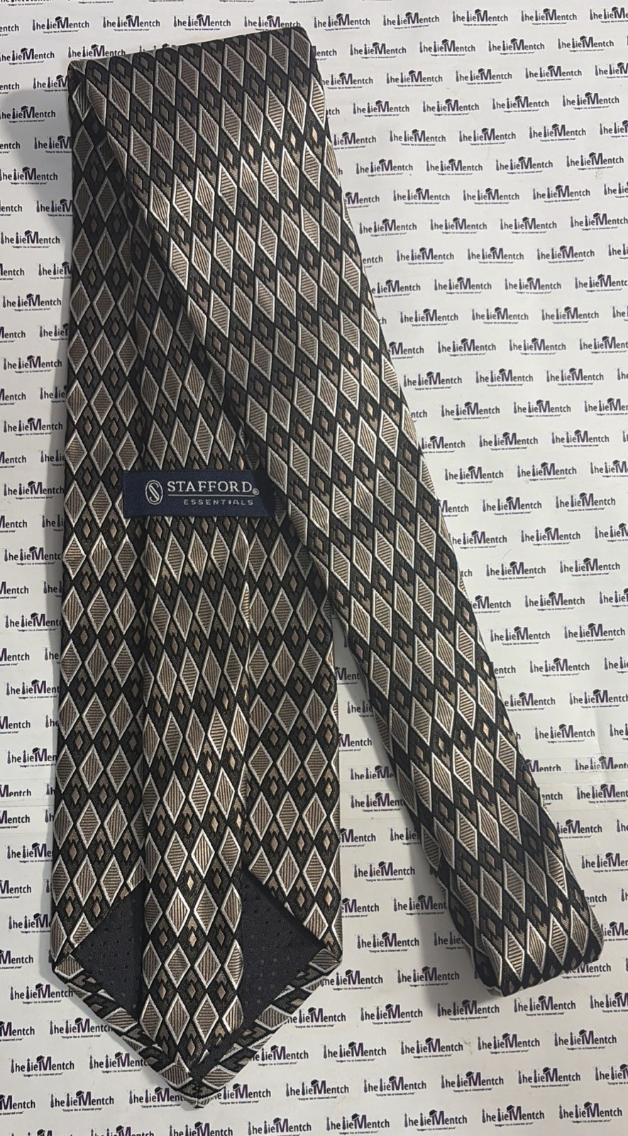 STAFFORD Silk Tan Diamond Pattern Adjustable Neck Tie 3.875 New Without Tags