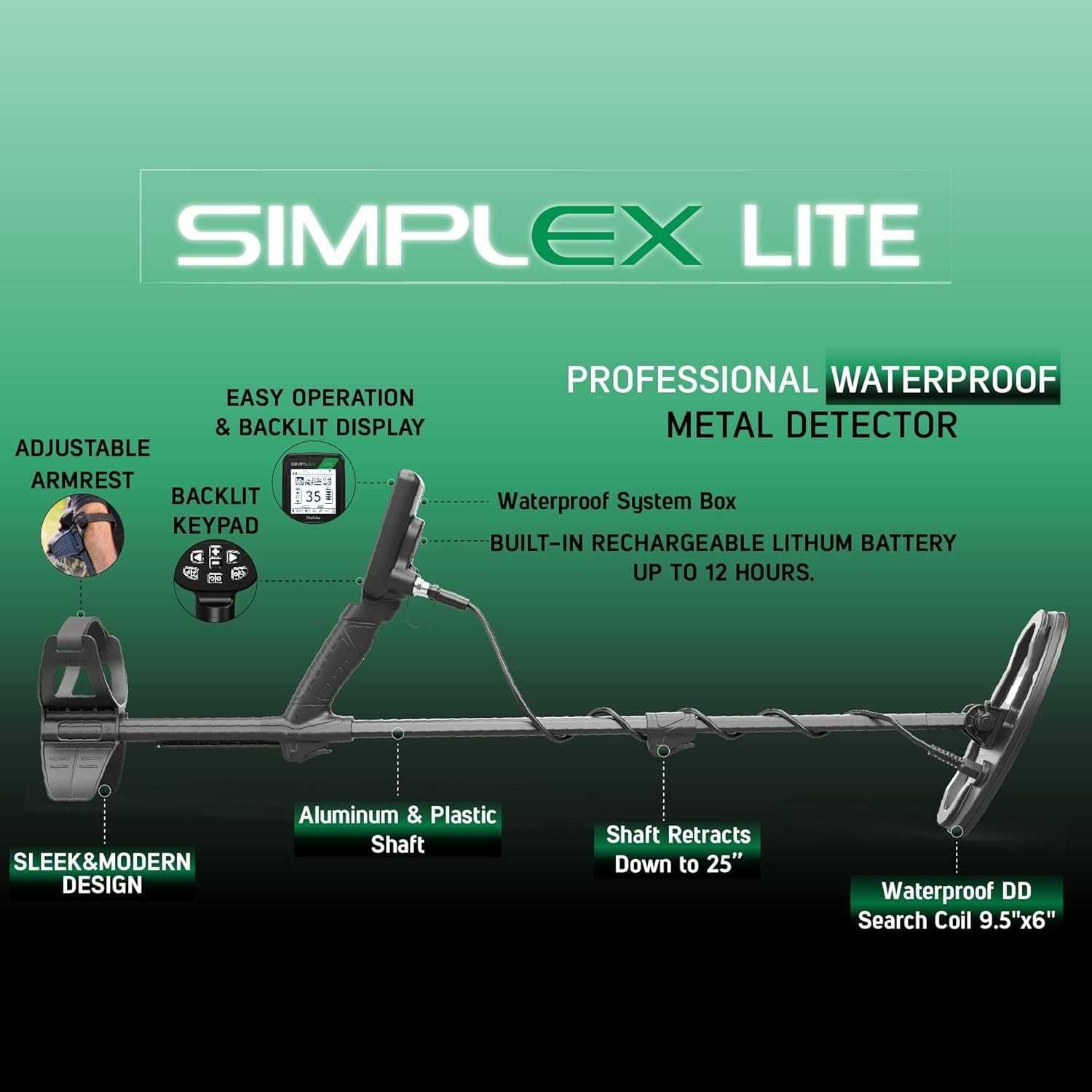 Nokta Simplex Lite Metal Detector with 9.5 Waterproof DD Search Coil, Vibrat...
