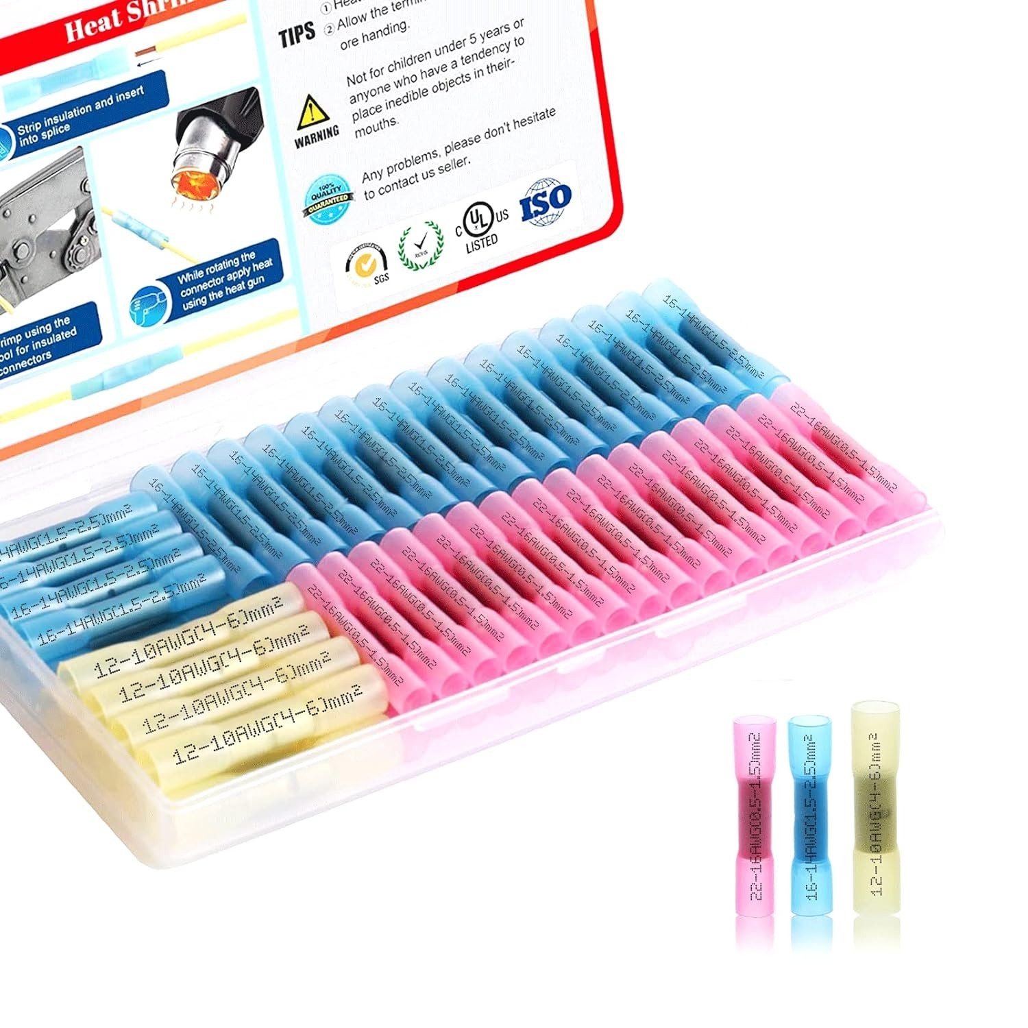 Heat Shrink Butt Connectors Kit 22-10 AWG, 100 pcs Waterproof Crimp Splice Te...