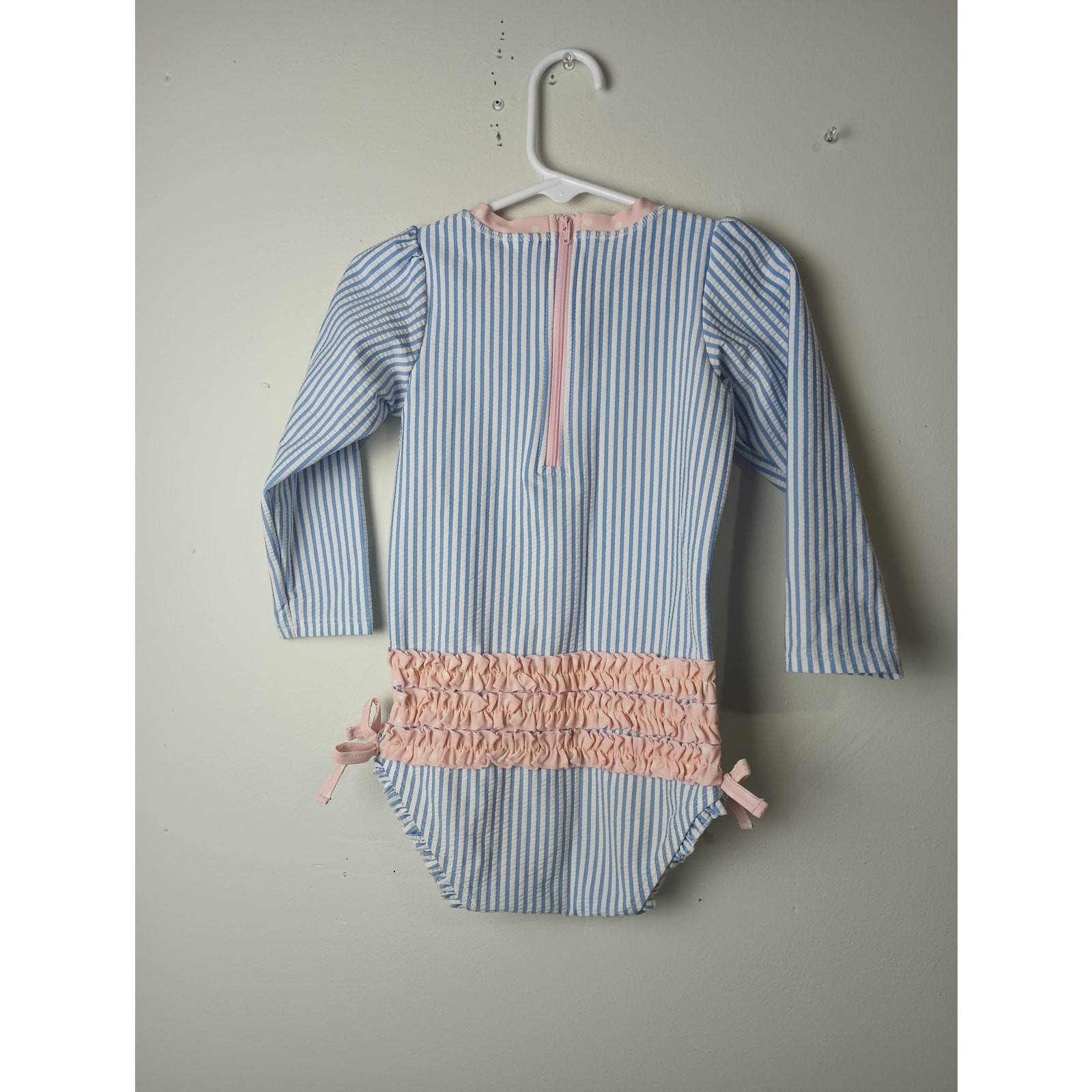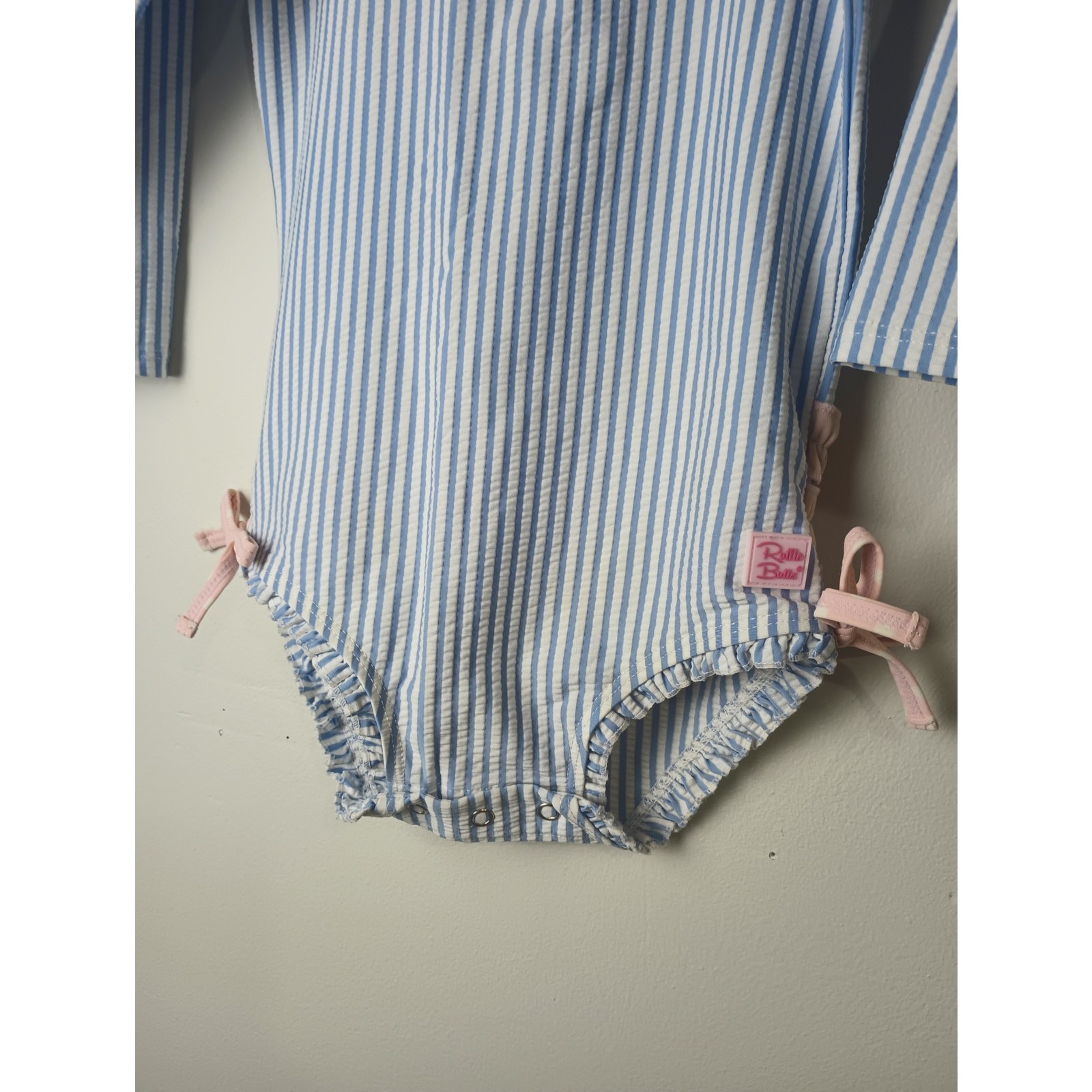 Ruffle Butts Baby Girls One Piece Rash Guard Blue White Seersucker Infant 2T