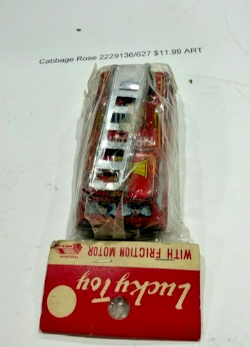 23604 - 1950's Lucky Toy Tin Litho Friction Fire Truck w/ Ladder - New Old Stock