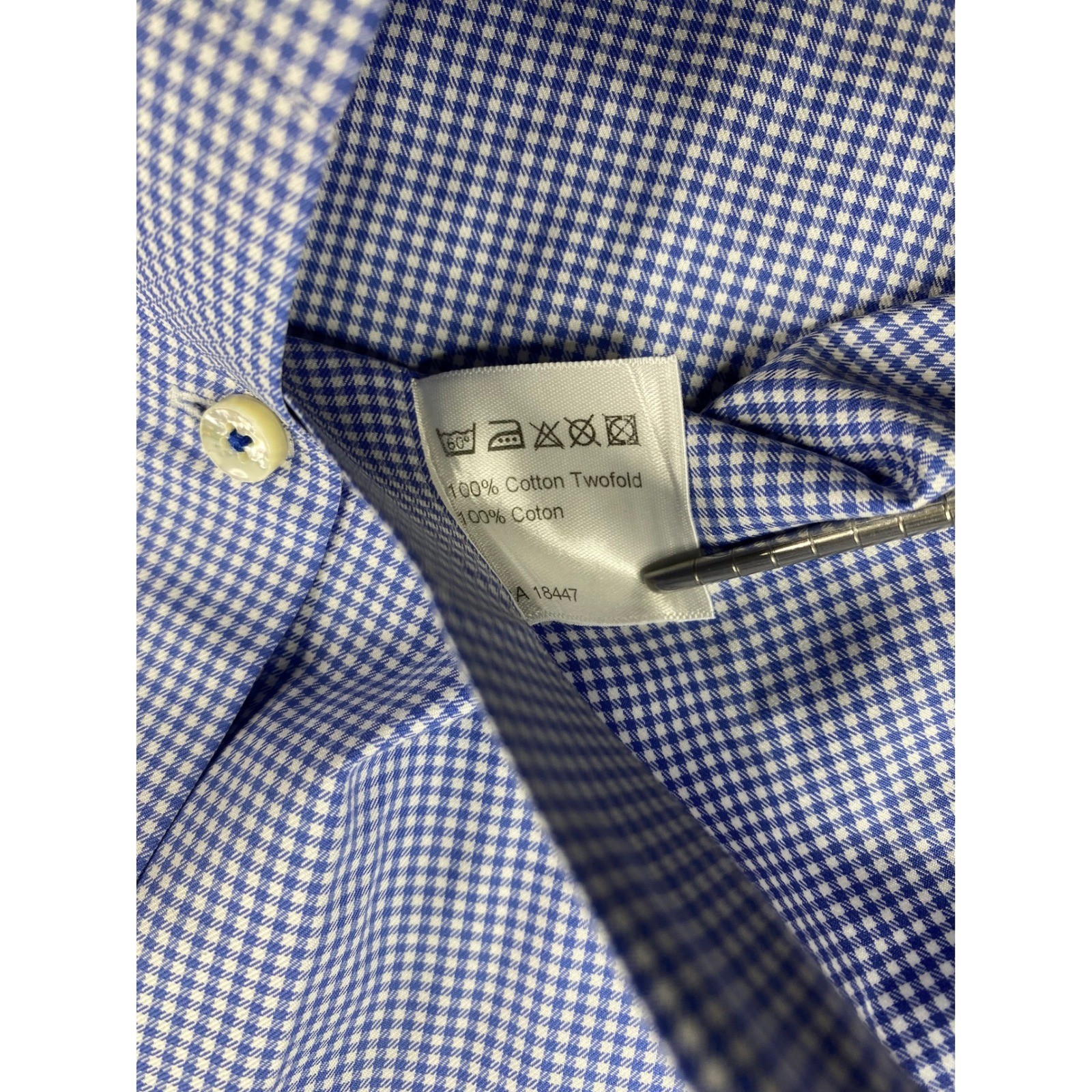 как выглядит Stenstroms Mens Blue White Check Fitted Body Twofold Cotton Dress Shirt 16 41 фото