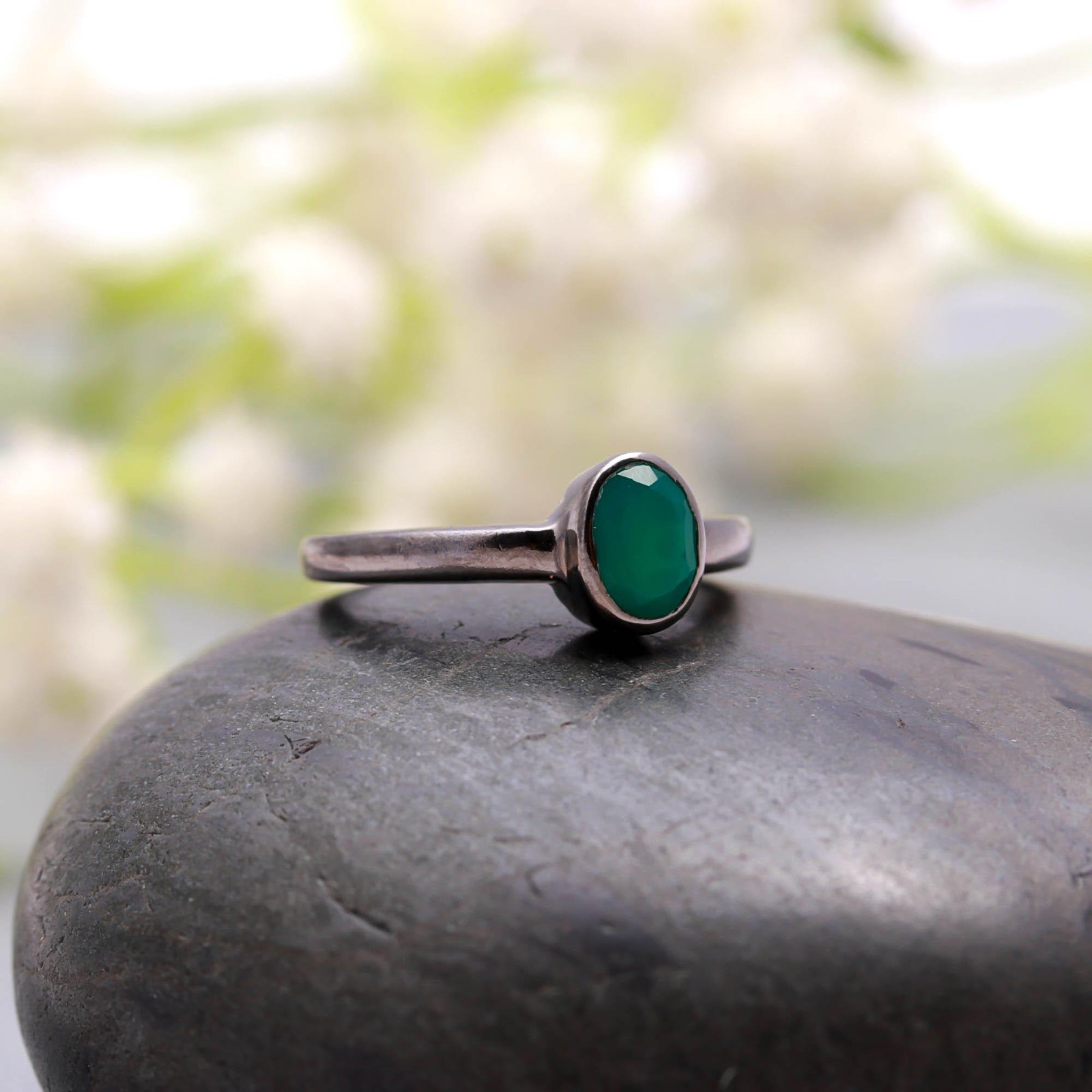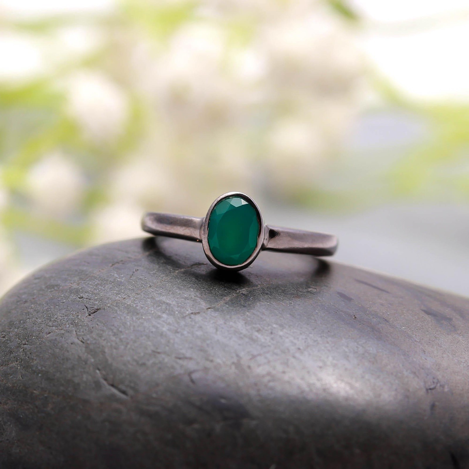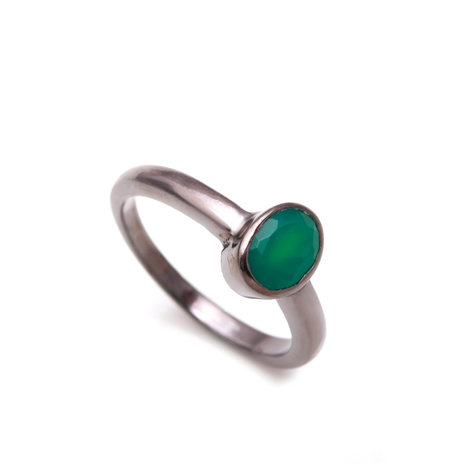 как выглядит Natural Green Onyx Oval Shape Ring Black Oxidized Sterling Silver Dainty Jewelry фото