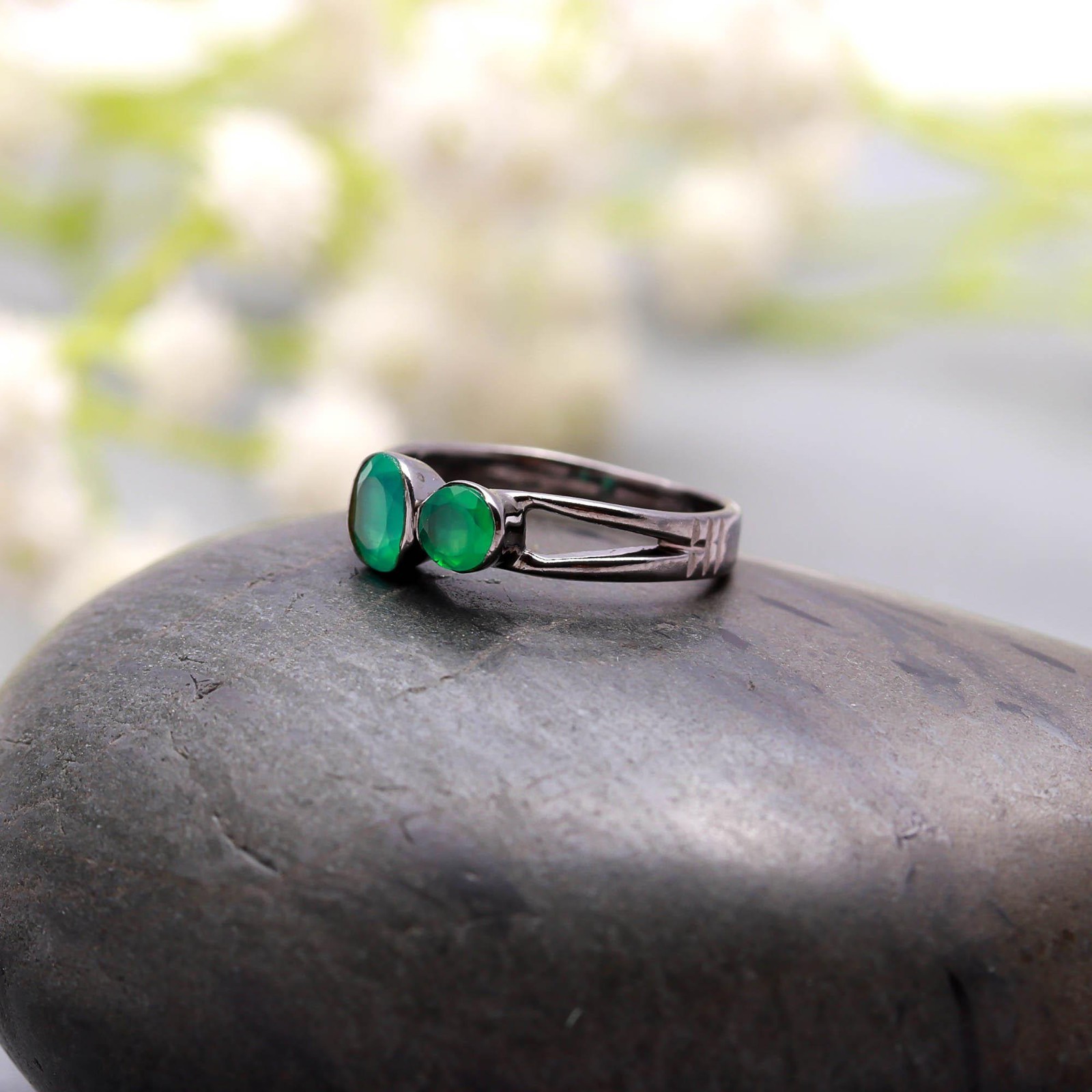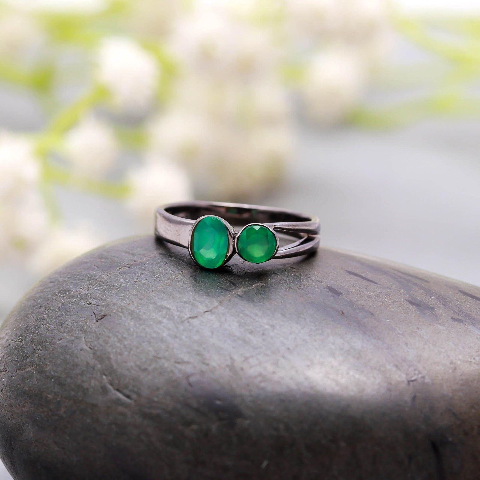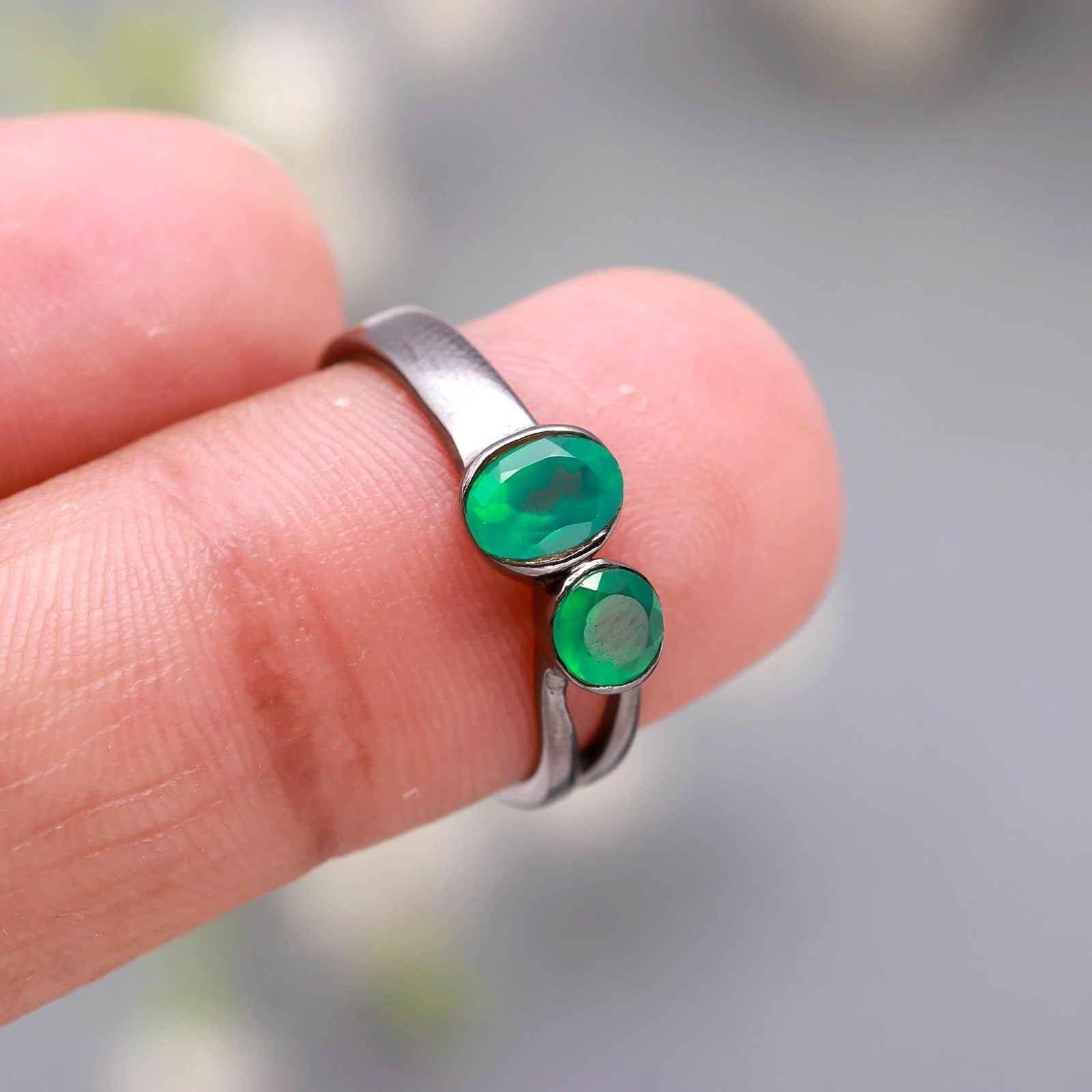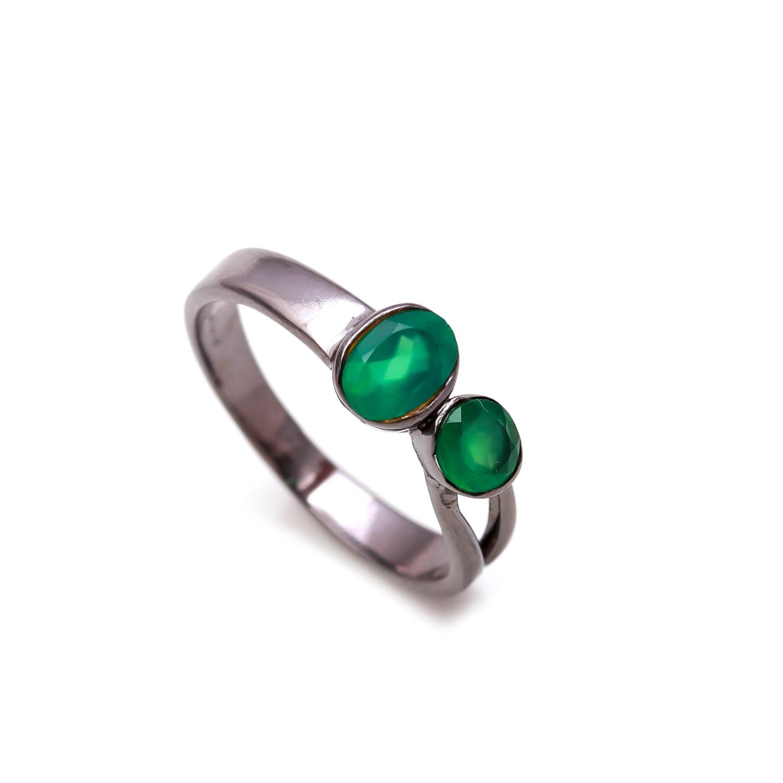 как выглядит Green Onyx Oval Round Shape Ring Oxidized 925 Sterling Silver Unique Jewelry фото