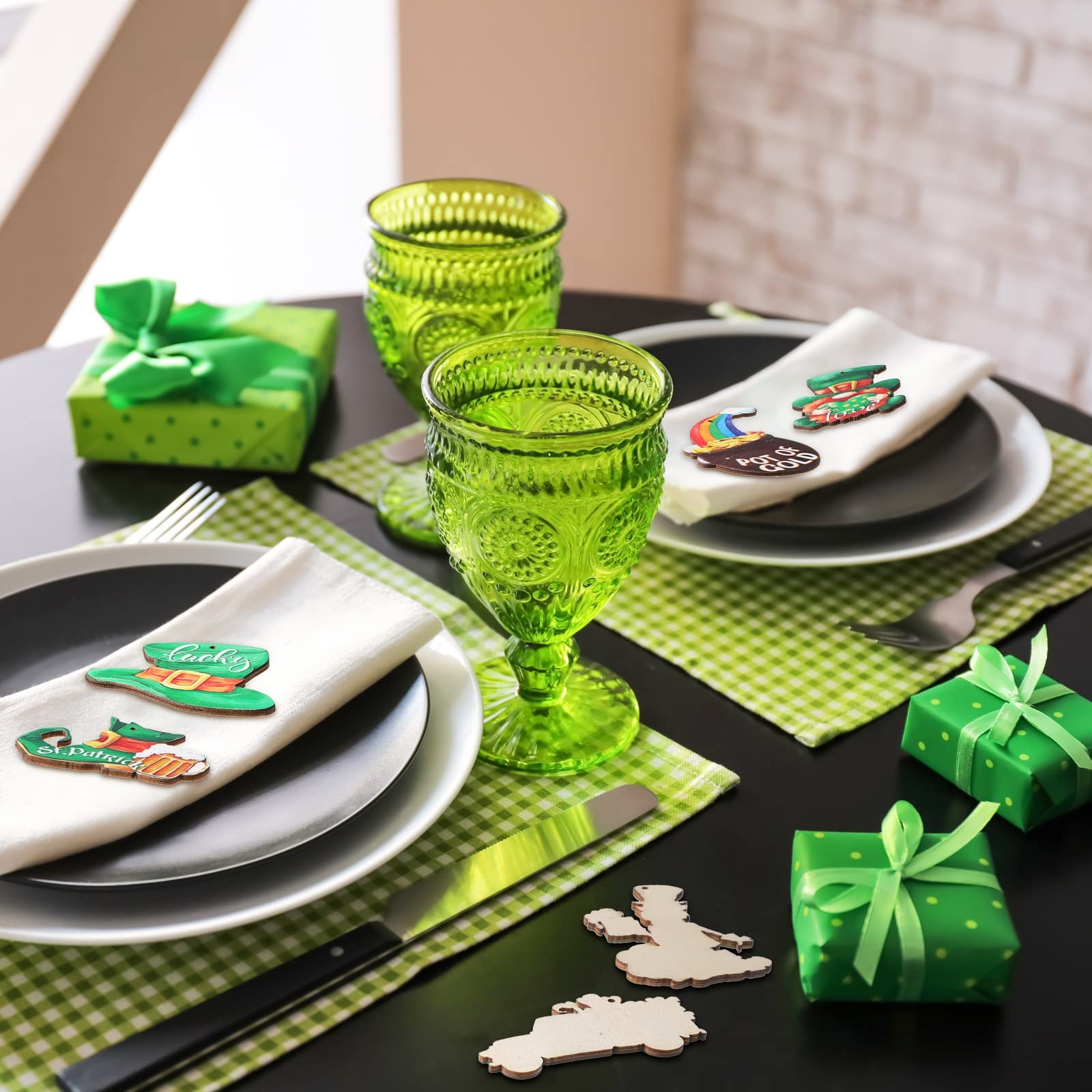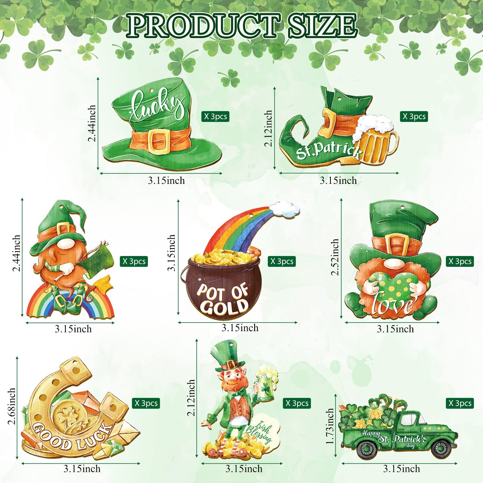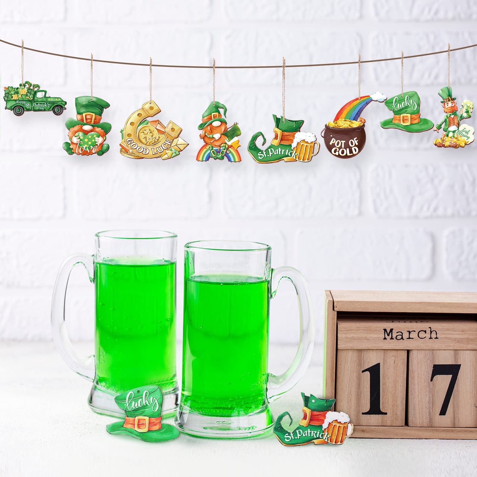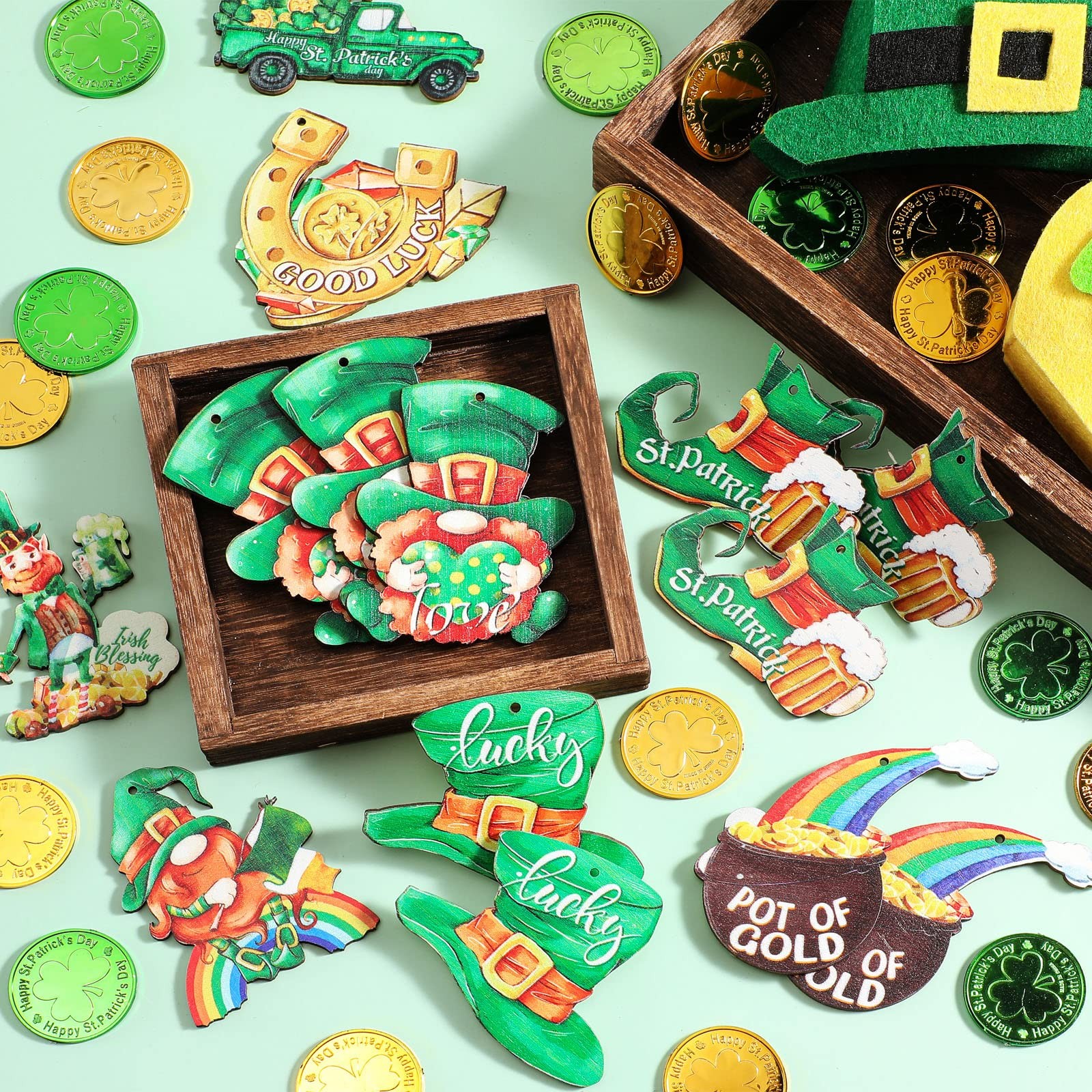 24 Pcs St. Patricks Day Ornaments for Tree Decorations Wooden Gnome Party Han...