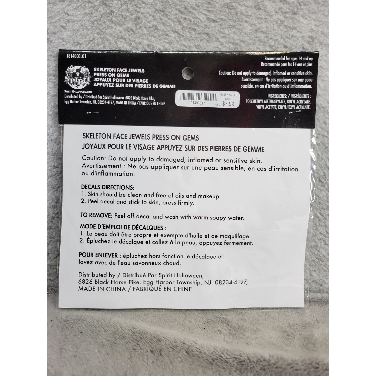Spirit Halloween Skeleton Face Jewels Press On Gems Costume Accessory