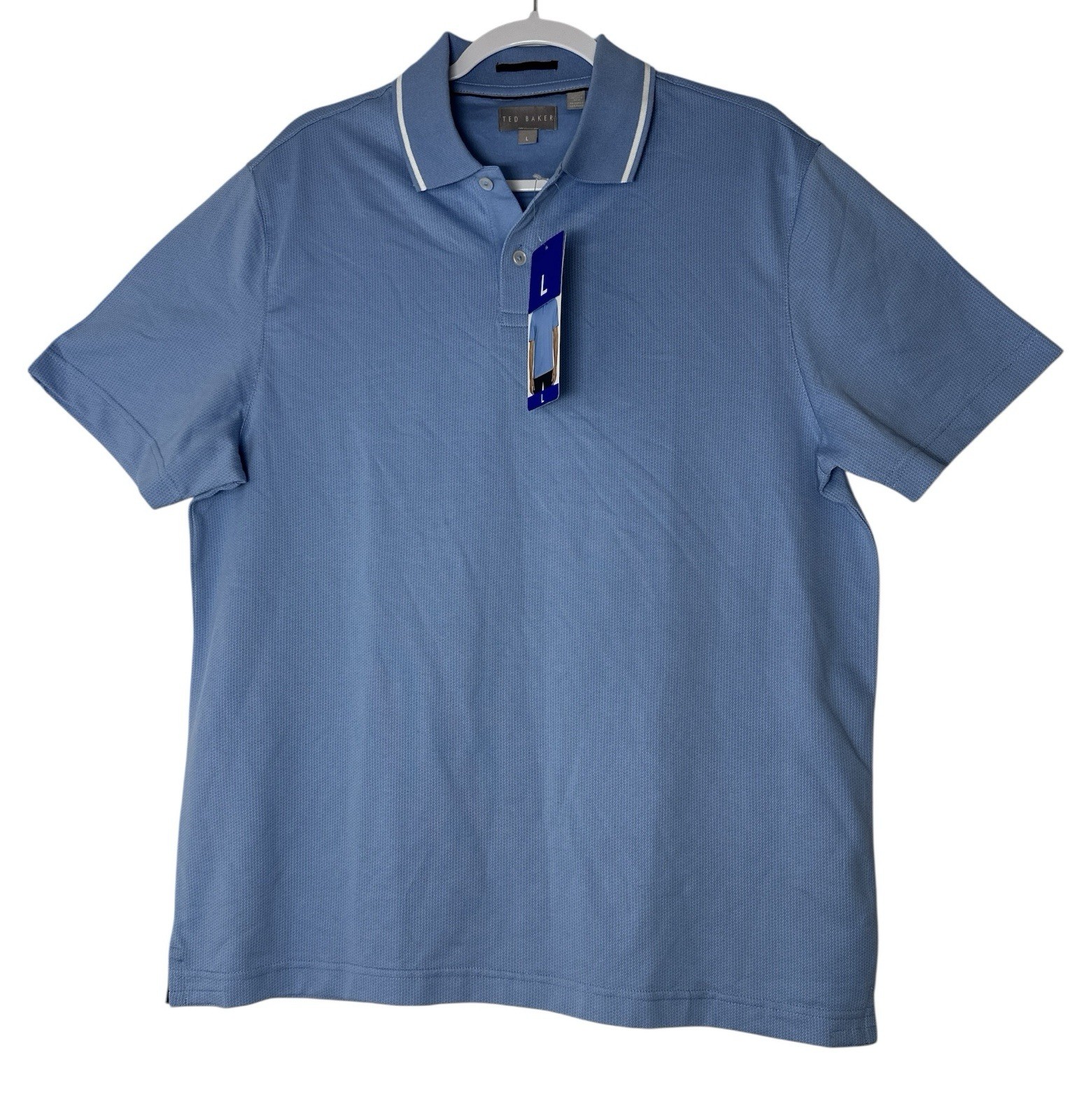 New Ted Baker Men s Polo Shirt Large Blue Short Sleeve Classic Golf Stretch