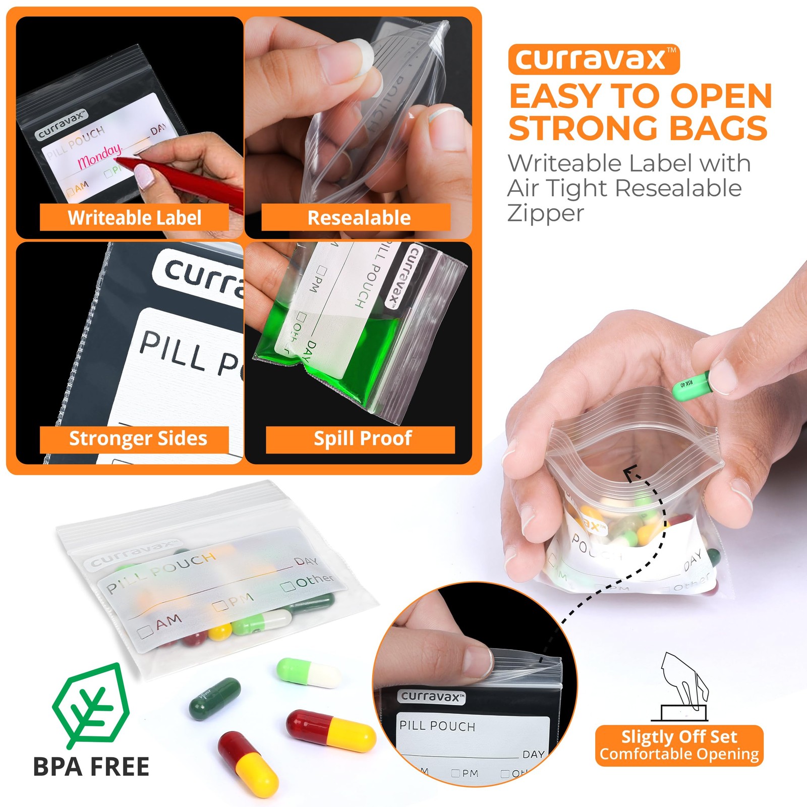 540 Pack Pill Bags 3x2.75in BPA Free Reusable Ziplock Pouches