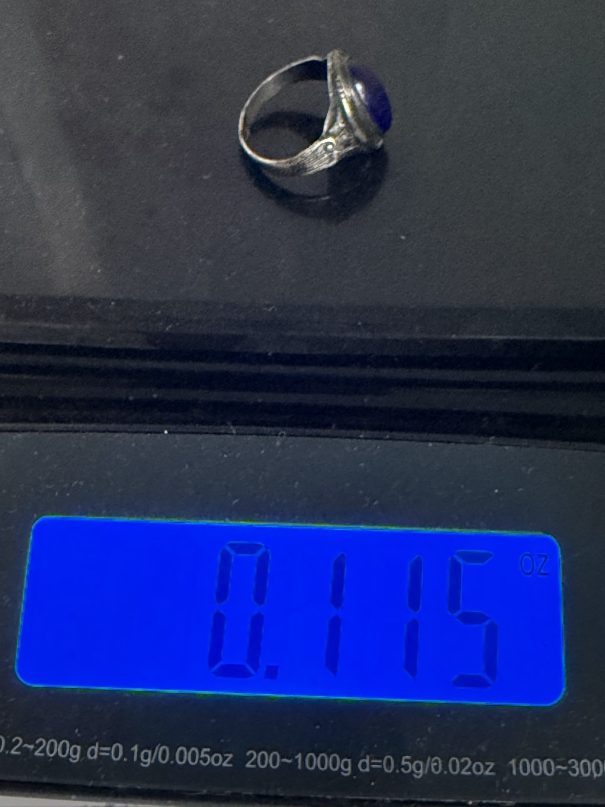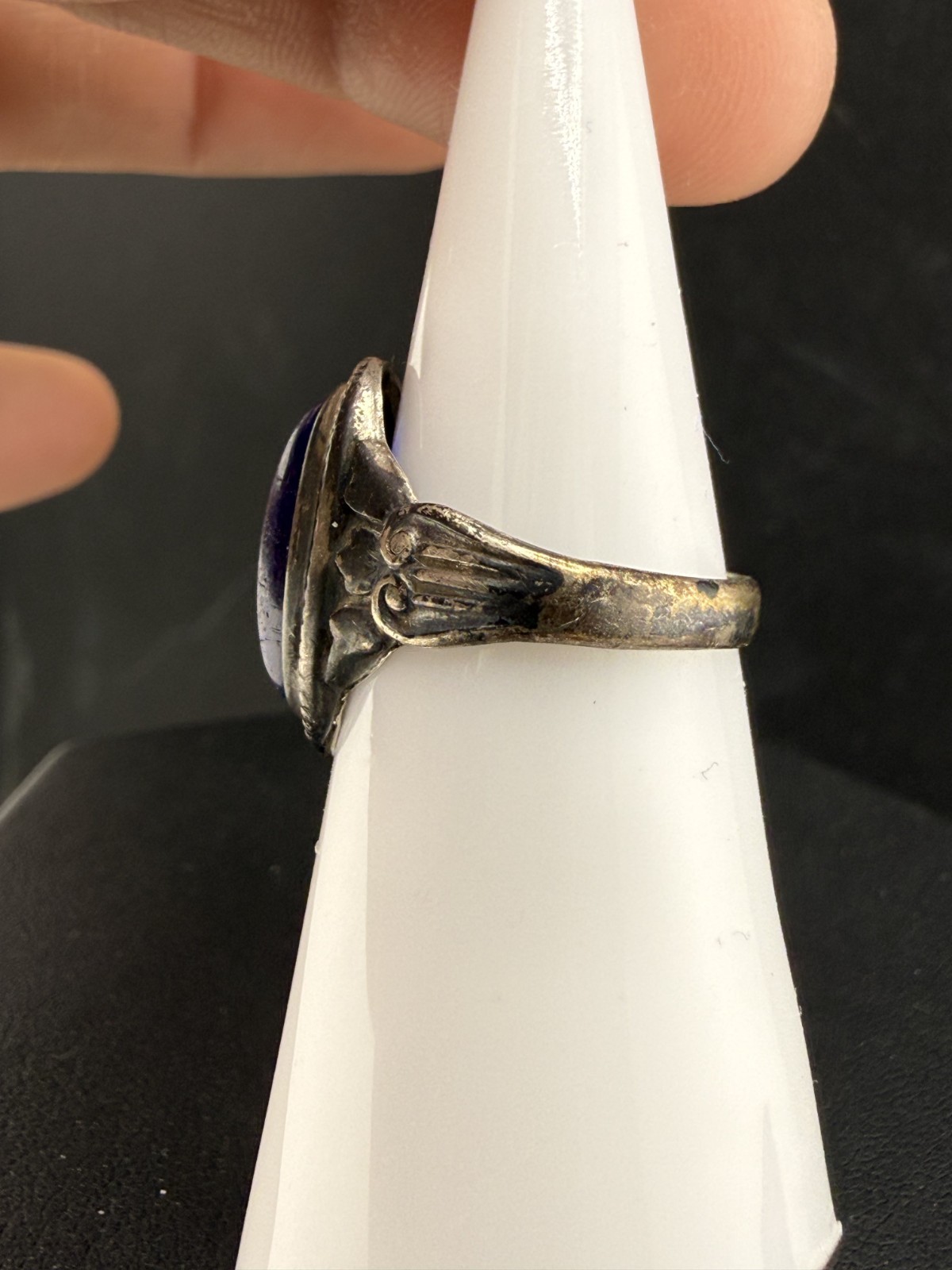 как выглядит Vintage Blue Oval Glass Sterling Silver Tone Size 6 Signed By Artist Ring фото