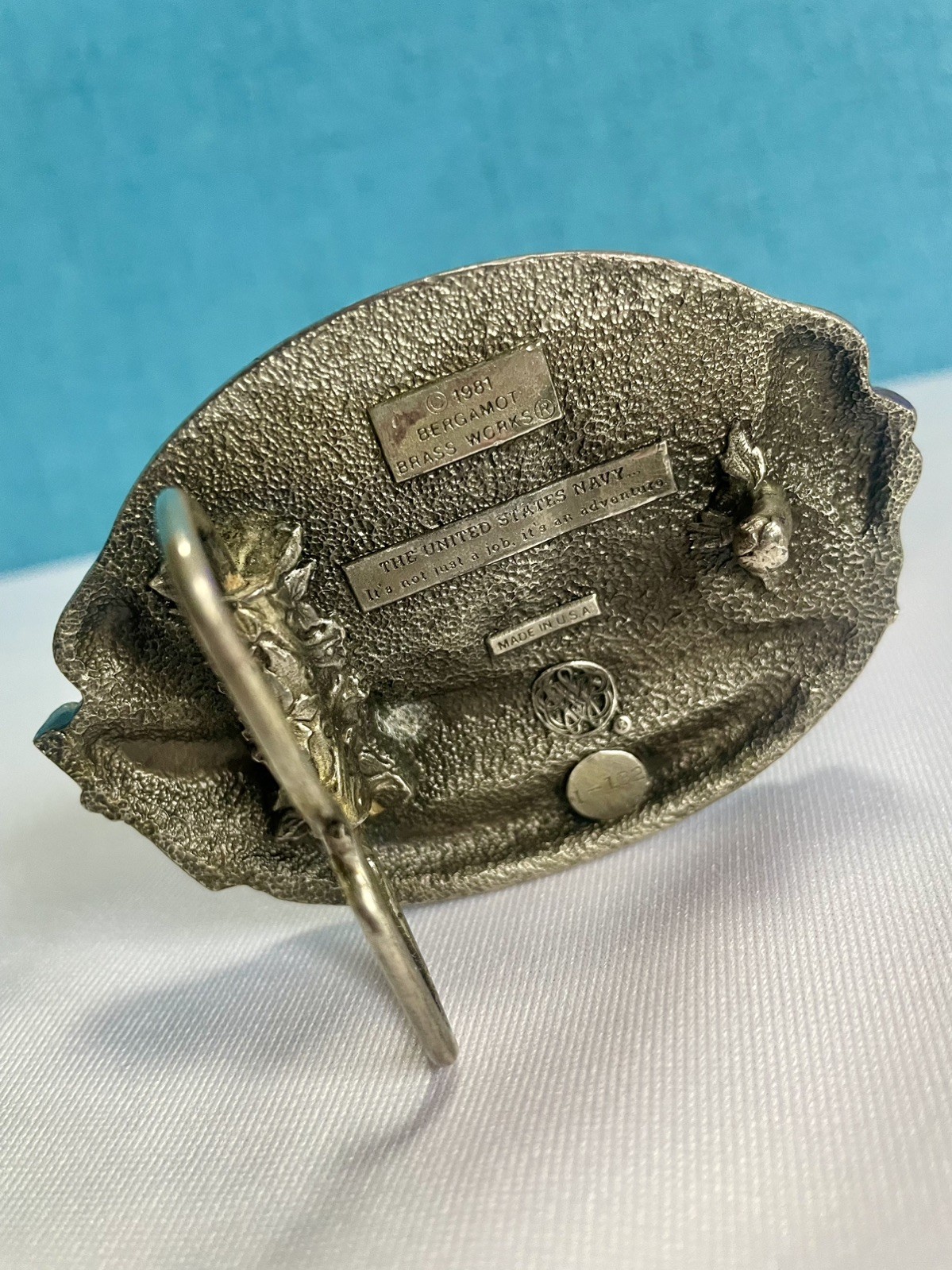 как выглядит The United States Navy Vintage Belt Buckle 1981 Bergamot Brass Works USA Made фото