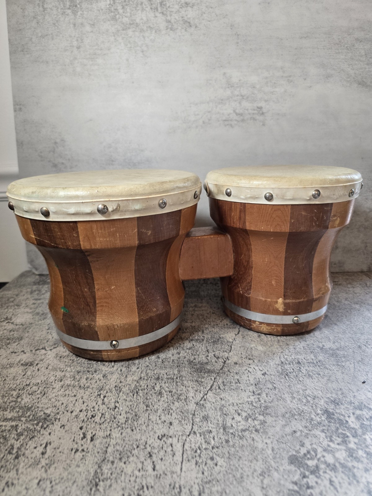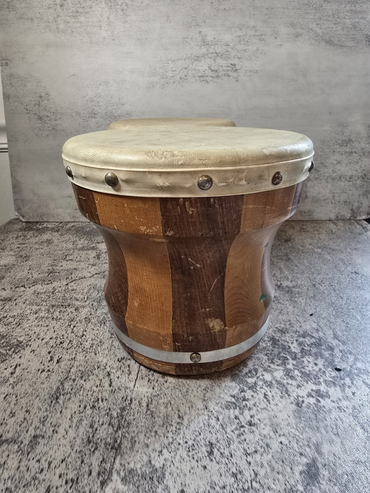 Vintage Wood Sheep Skin Leather Bongo Drums - Used Condition