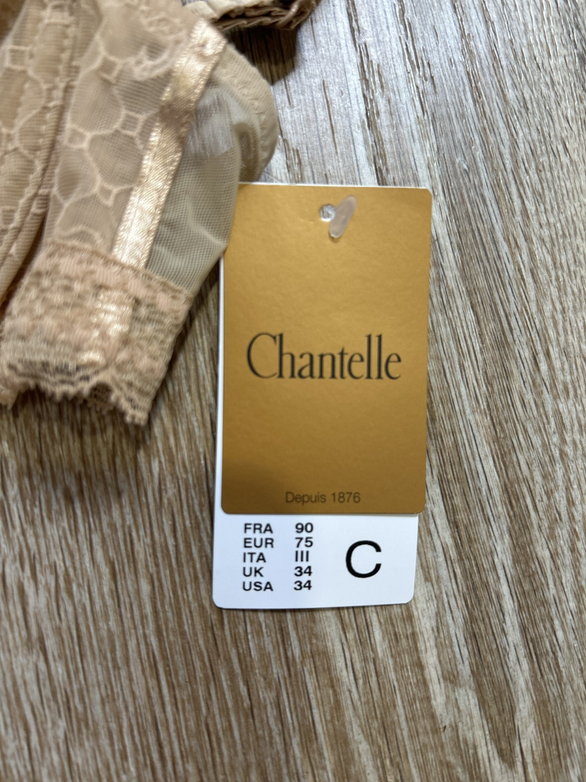 Chantelle Bra 34C 3641 C Chic beige unlined Plunge Underwire Bra NEW NWT