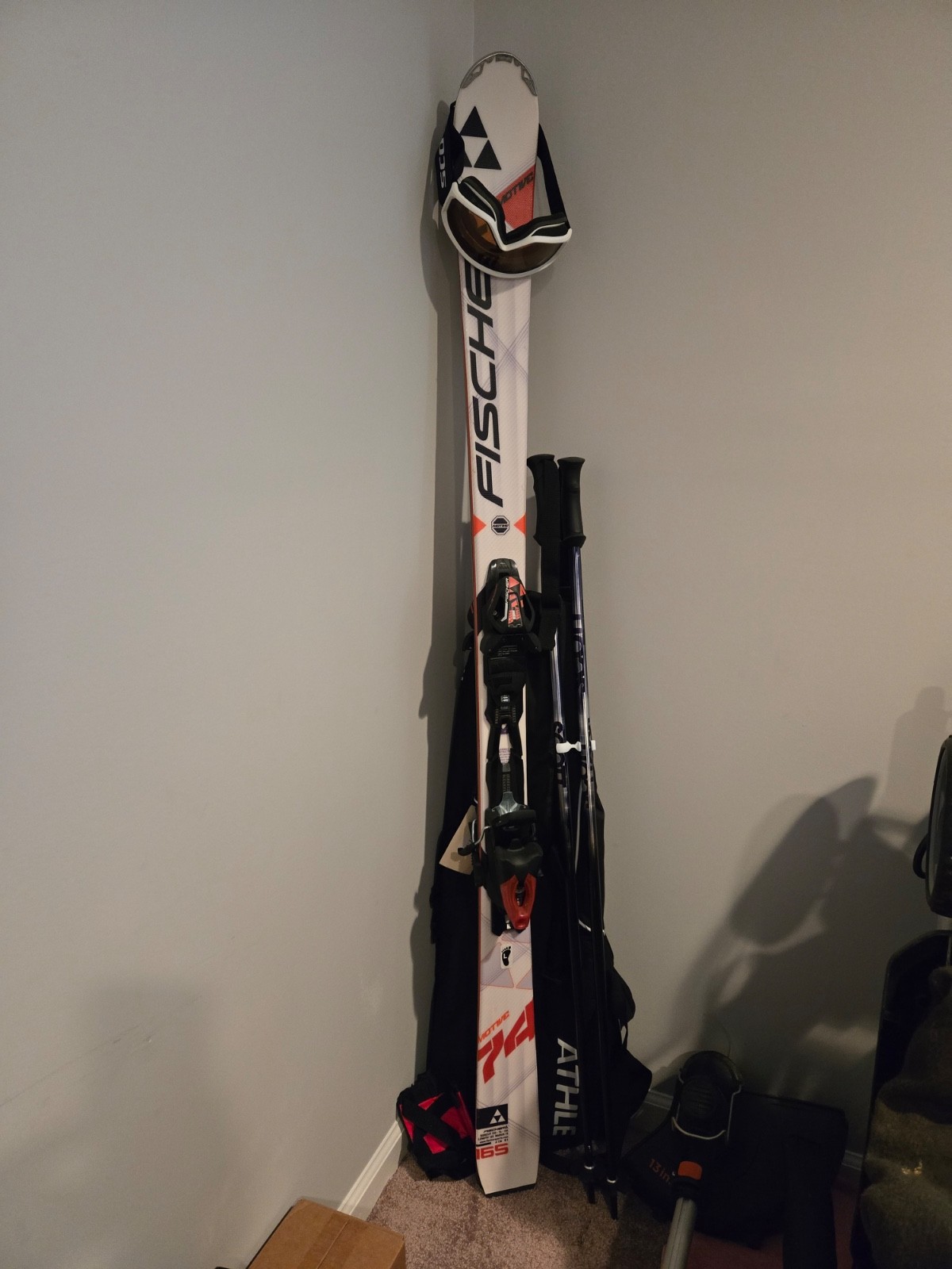 как выглядит Snow Skiing Package - Fischer Skis, Vacuum Boots, Poles, Goggles, and Tote Bag фото