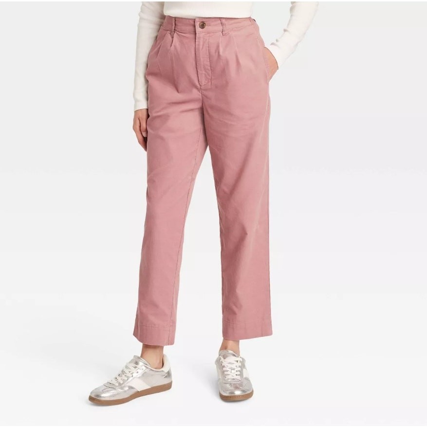 как выглядит NWT Universal Thread High Rise Straight Leg Corduroy Chino Pants Pink Women