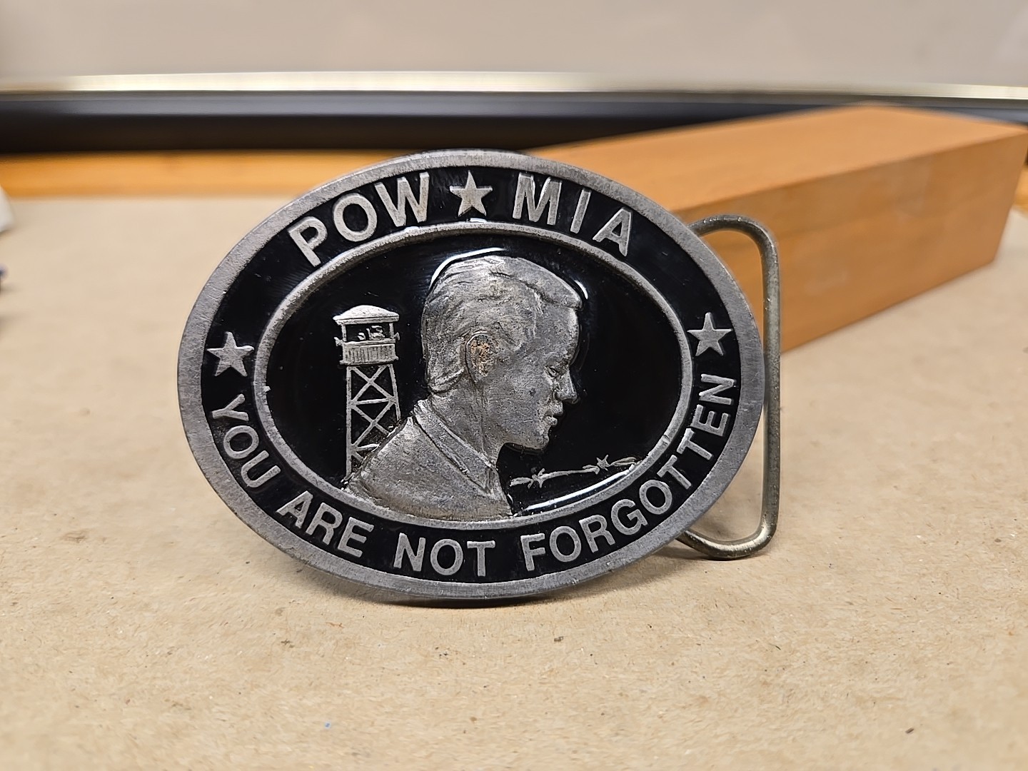 как выглядит Military POW MIA Belt Buckle C J Inc 1987 Mens You Are Not Forgotten Veterans фото