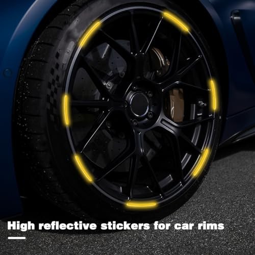 20PCS Reflective Car Wheel Decorative Stripe Stickers, Fluorescent Auto Yellow
