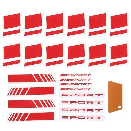 24Pcs Car Decor Stickers,4Pcs Rear View Mirror Stickers,8Pcs Sport Emblem Red