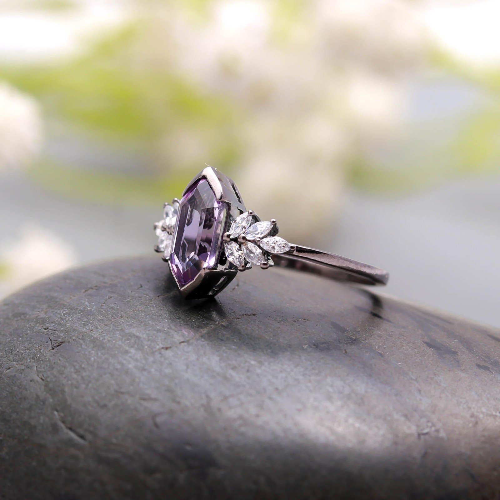 как выглядит Natural Pink Amethyst Hexagon Ring 925 Sterling Silver Oxidized Jewelry For Her фото