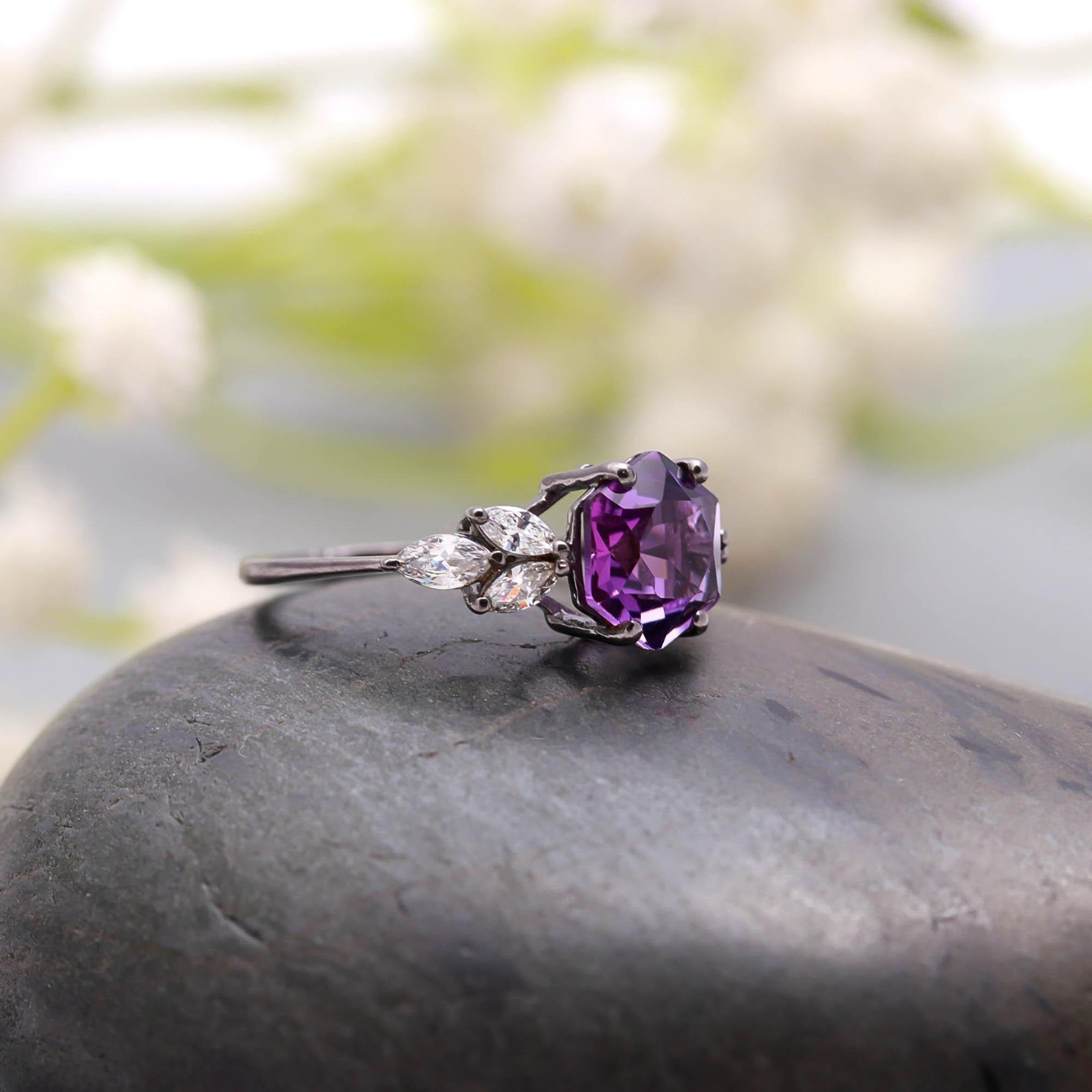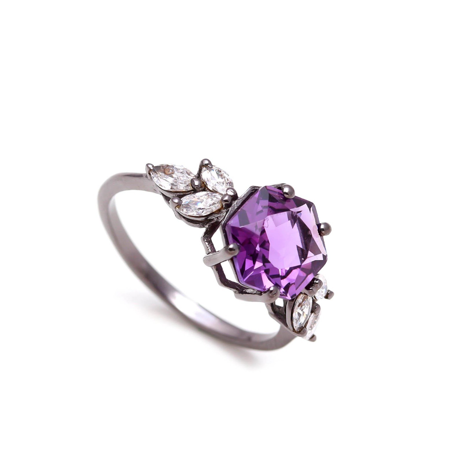 как выглядит Natural Pink Amethyst Hexagon Ring 925 Sterling Silver Black Oxidized Jewelry фото
