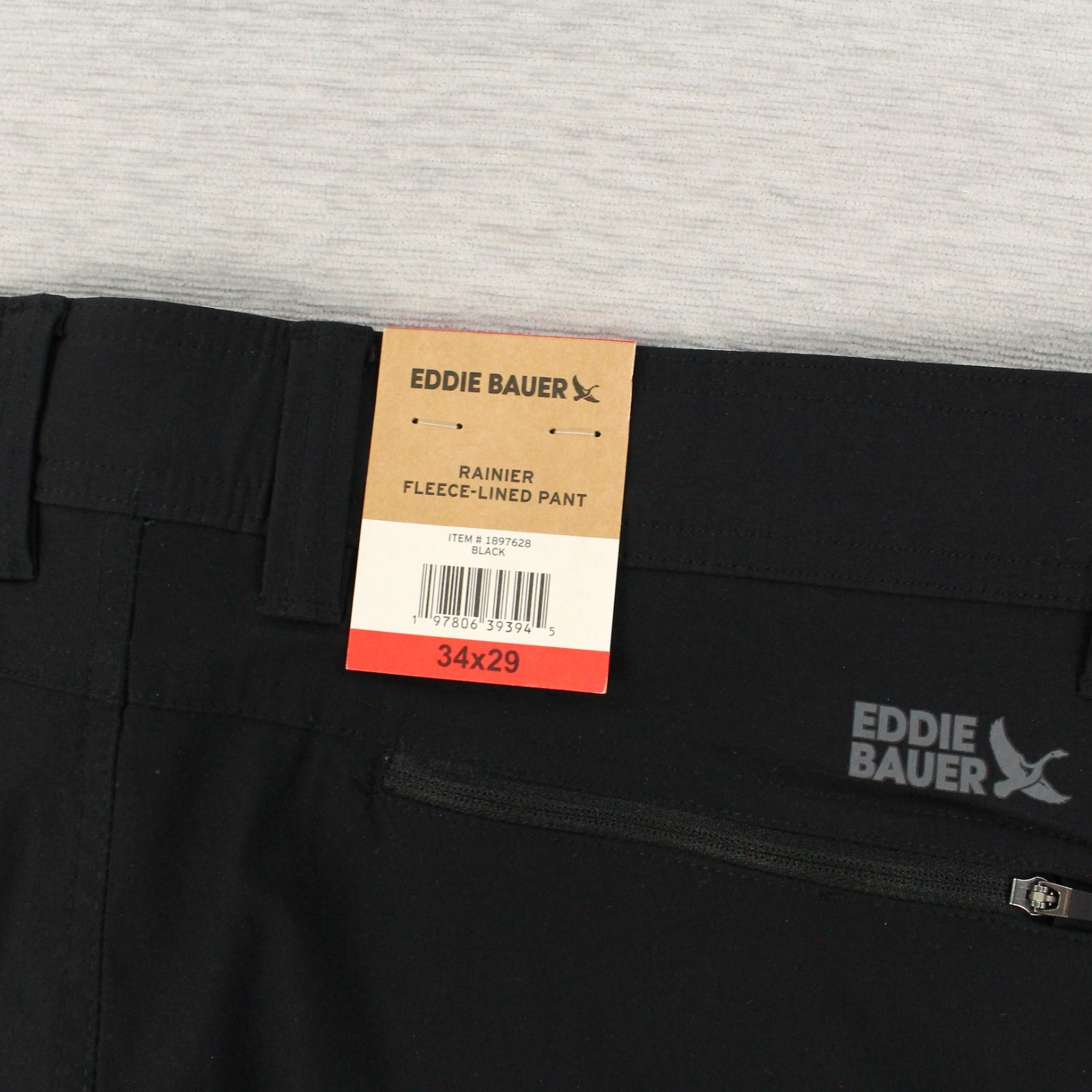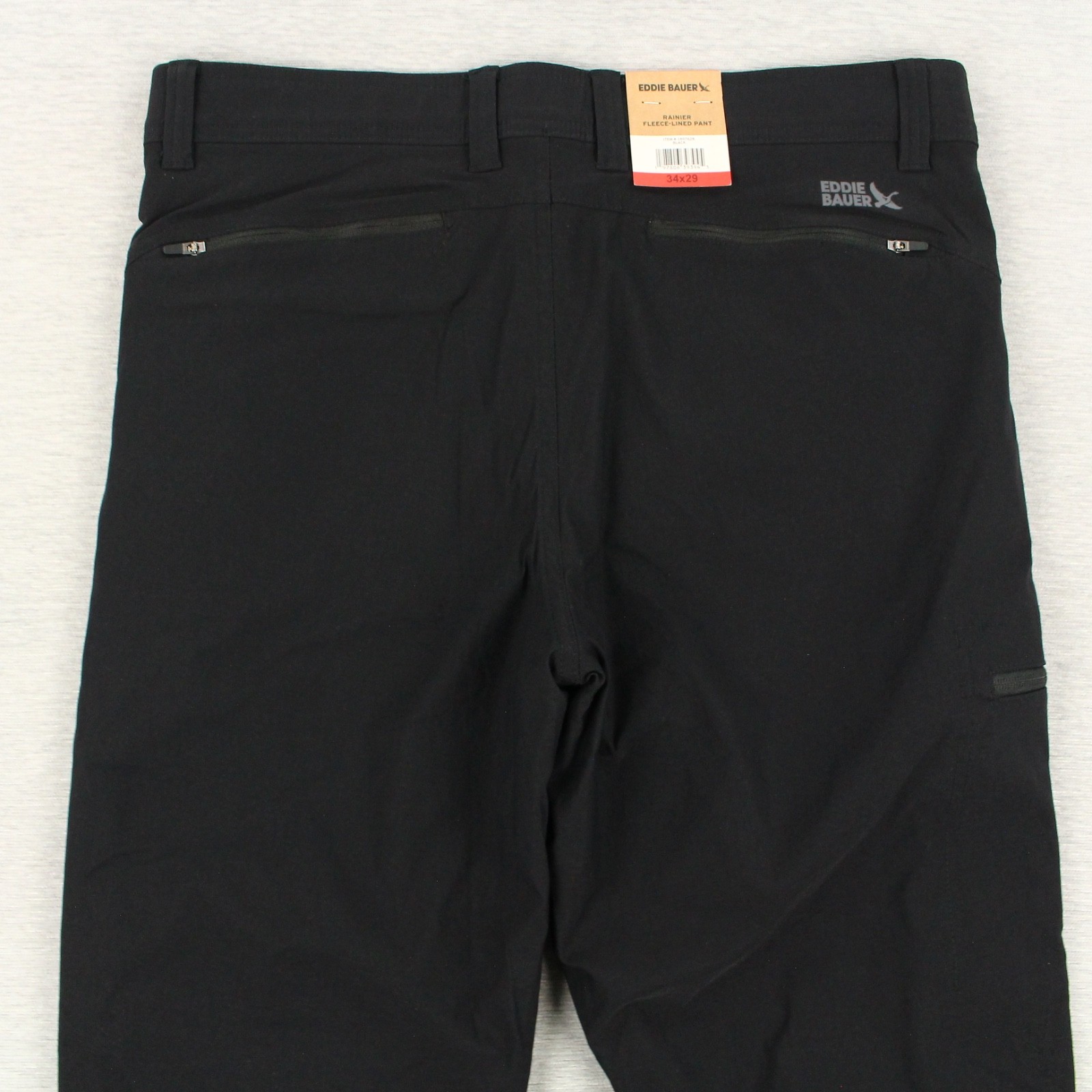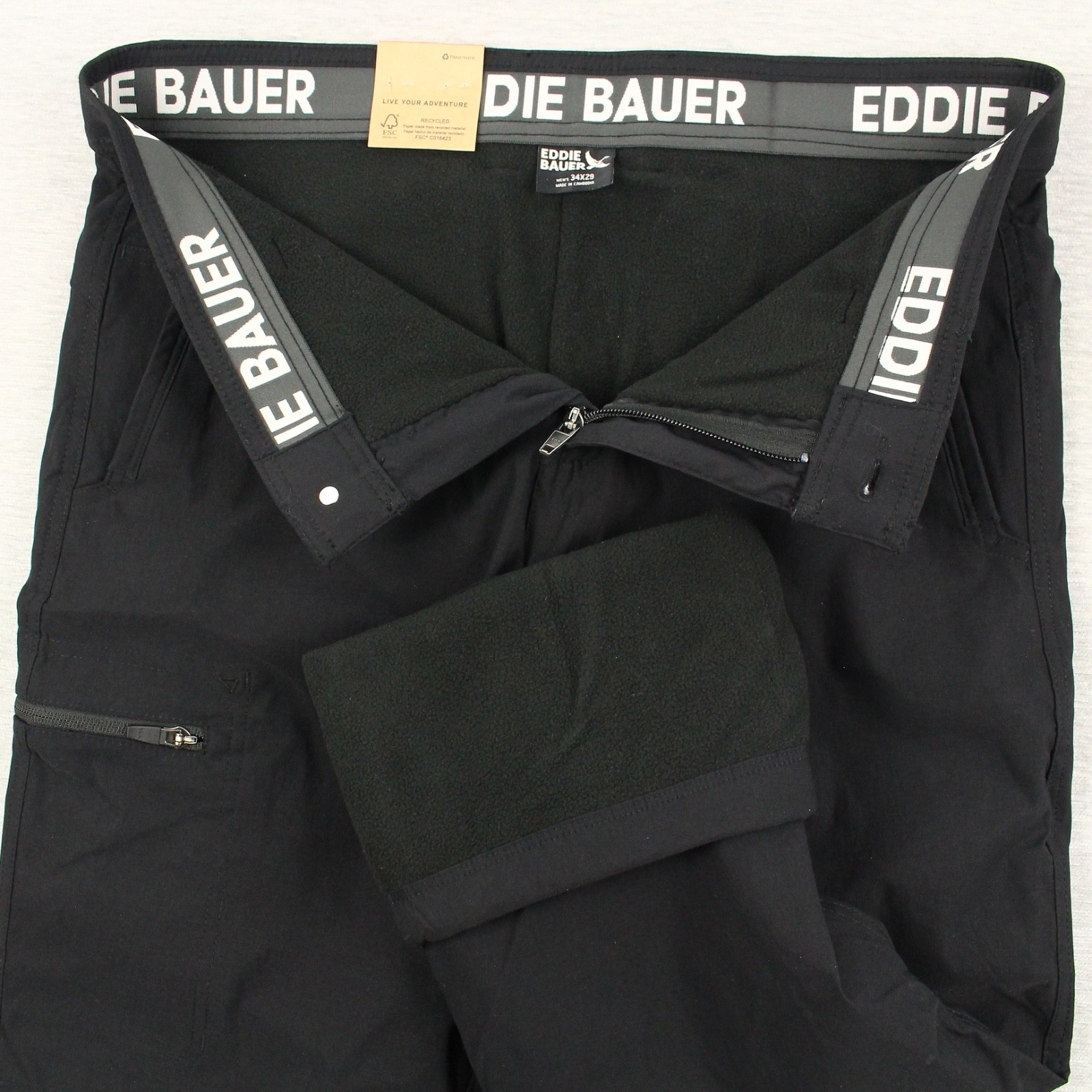 Eddie Bauer Rainier Fleece Lined Pants Mens 34x29 Black Nylon Spandex NEW