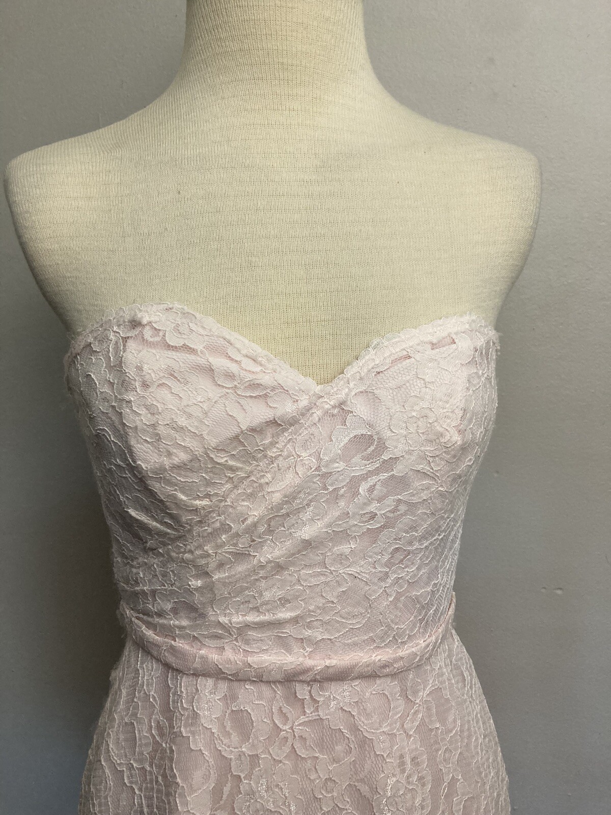 как выглядит Disney Alfred Angelo Pink Lace Dress Strapless Bridal Bridesmaid NWT 2 фото