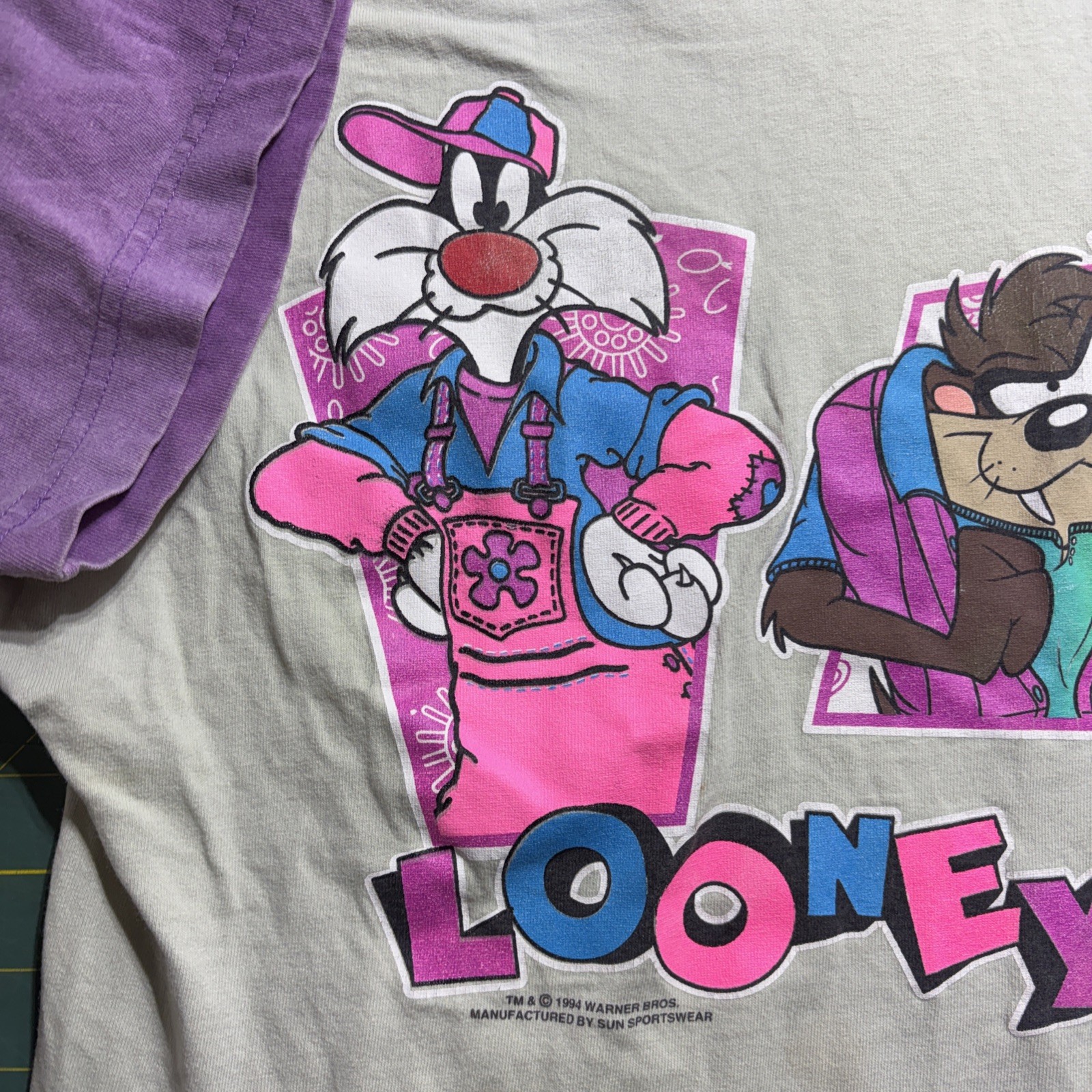 VTG 90s 1994 Hoodie Taz T Shirt Large Looney Toons
