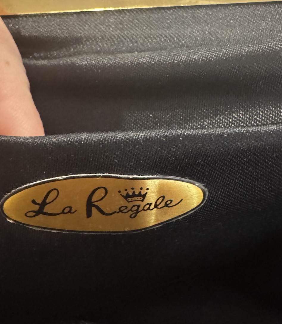 La Regale Black Fabric Evening Bag Gold Frame Chain Strap Formal Handbag