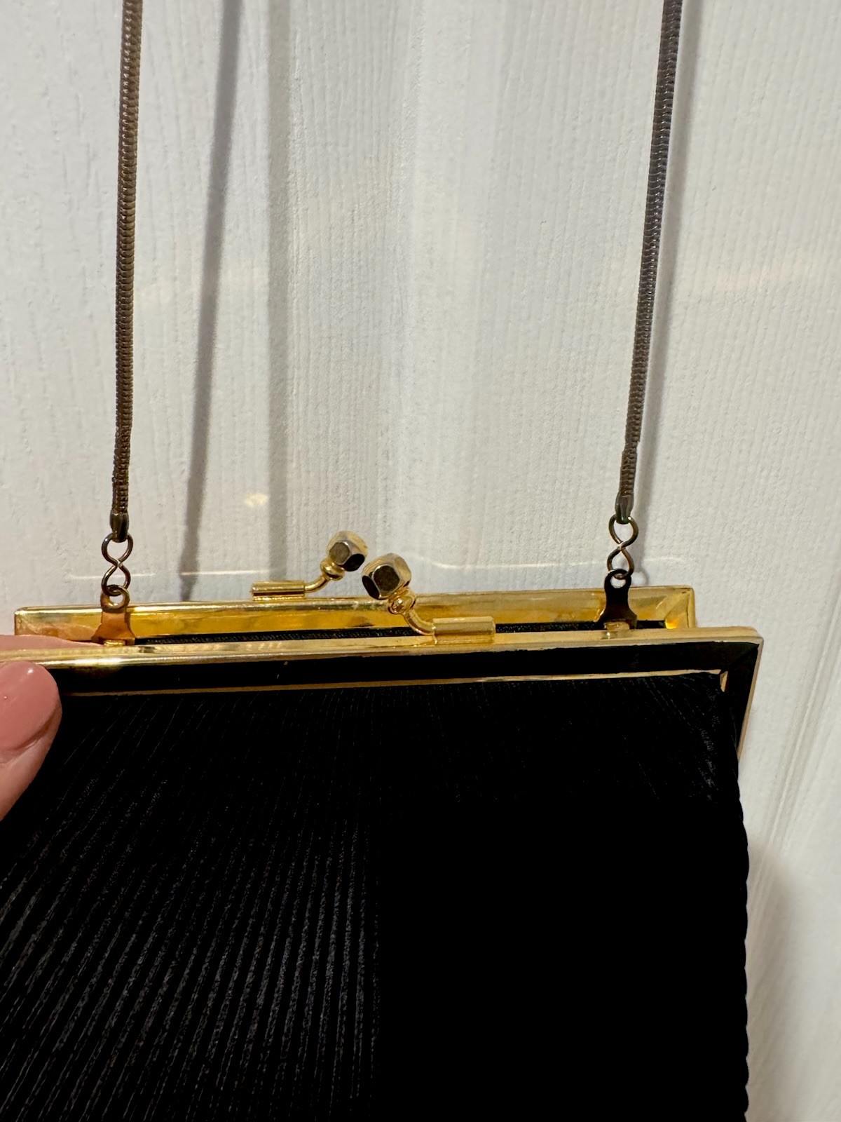 как выглядит La Regale Black Fabric Evening Bag Gold Frame Chain Strap Formal Handbag фото
