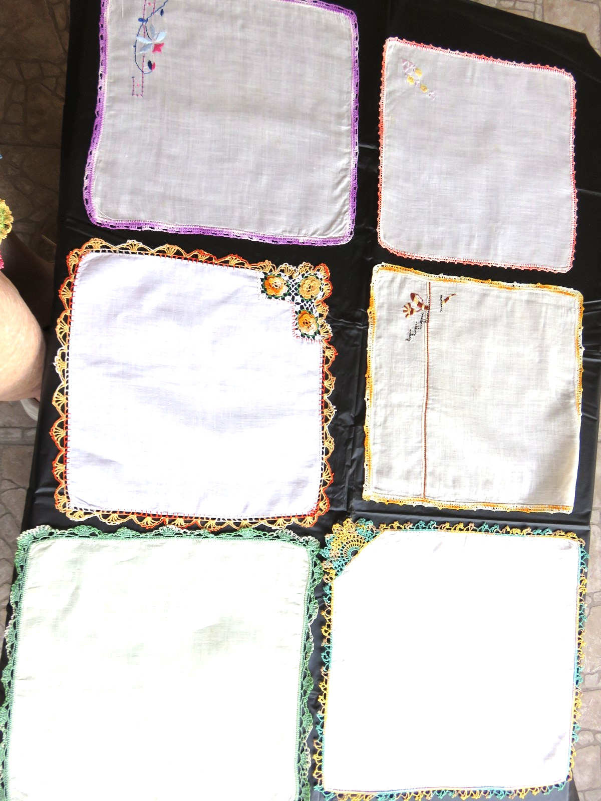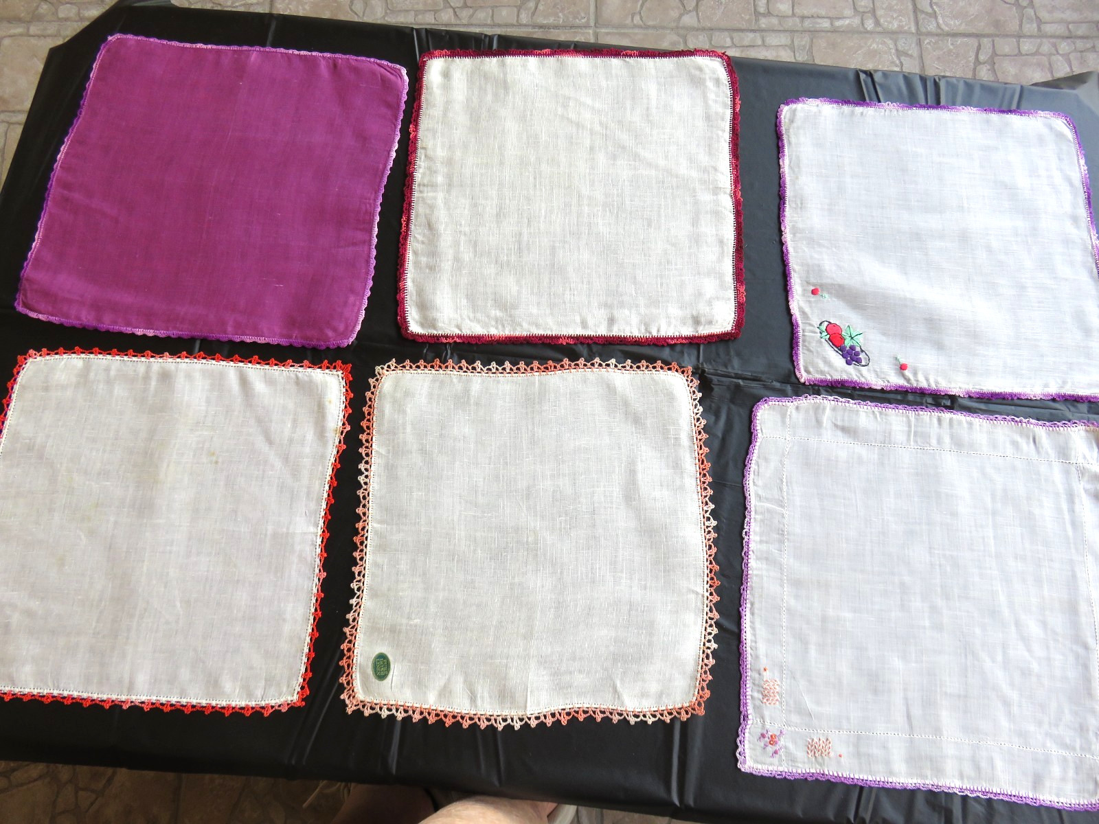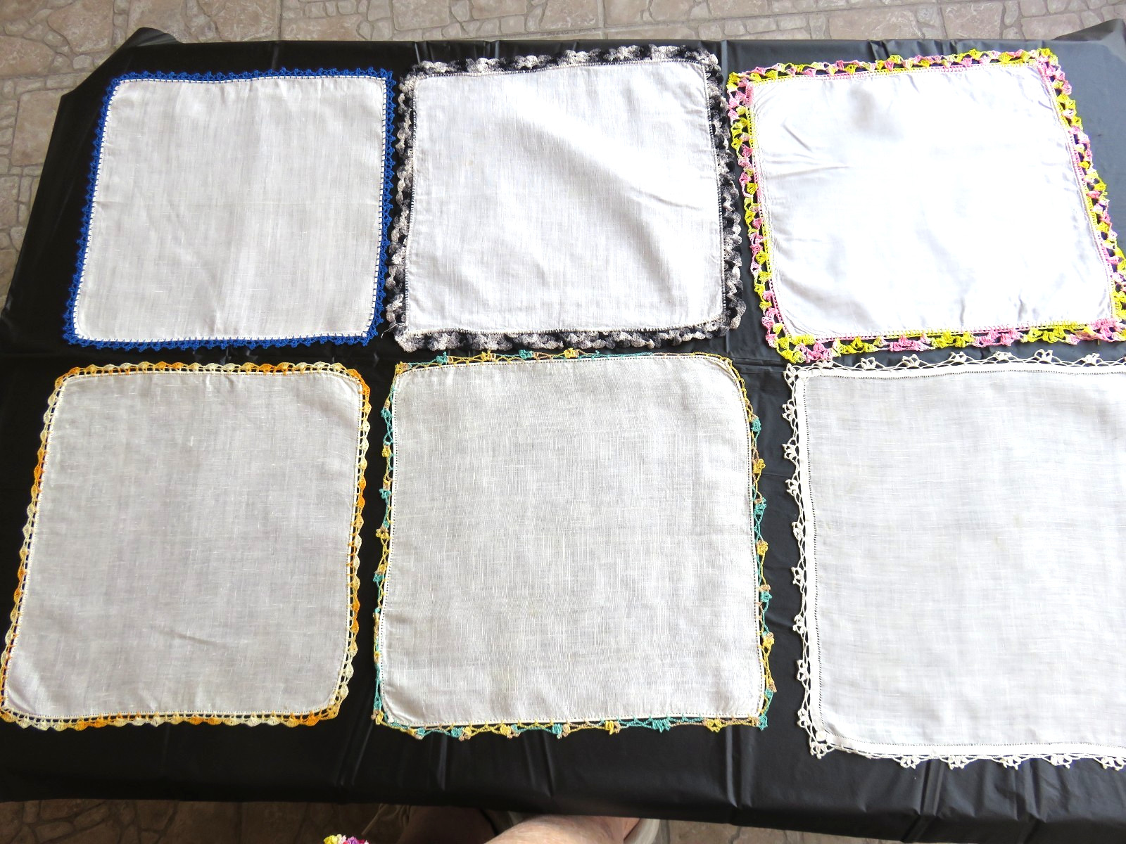 Lot of 38 Vintage Handkerchiefs w/crocheted tatted edges