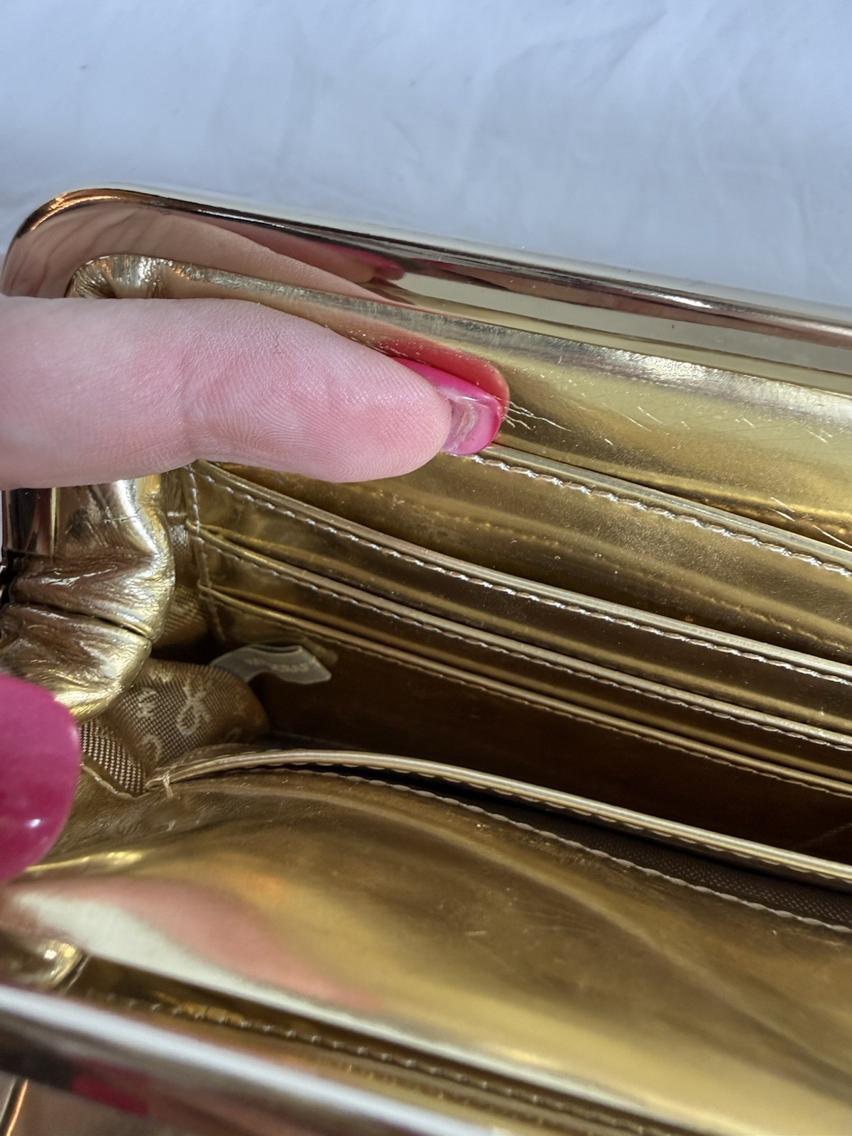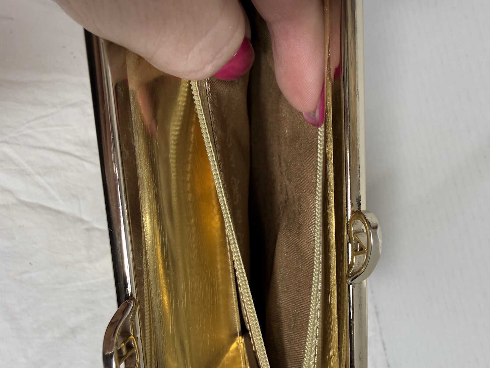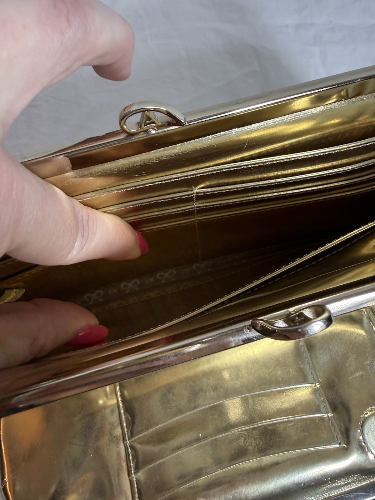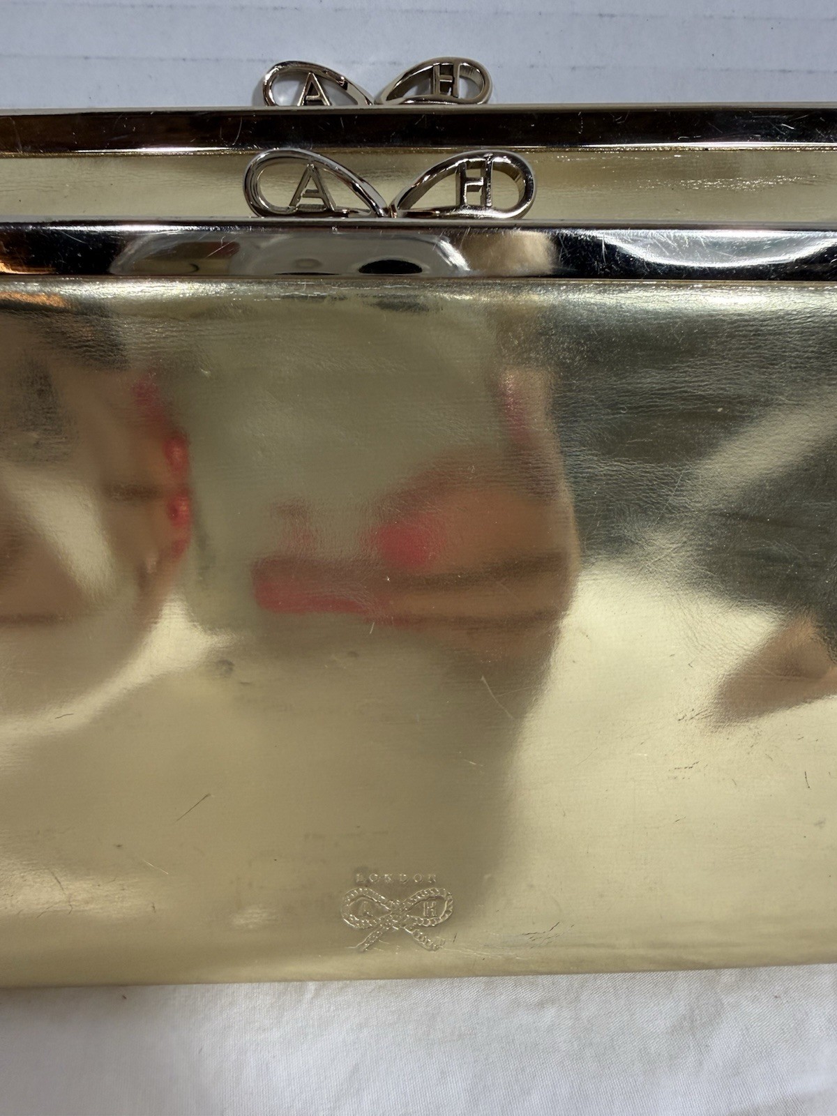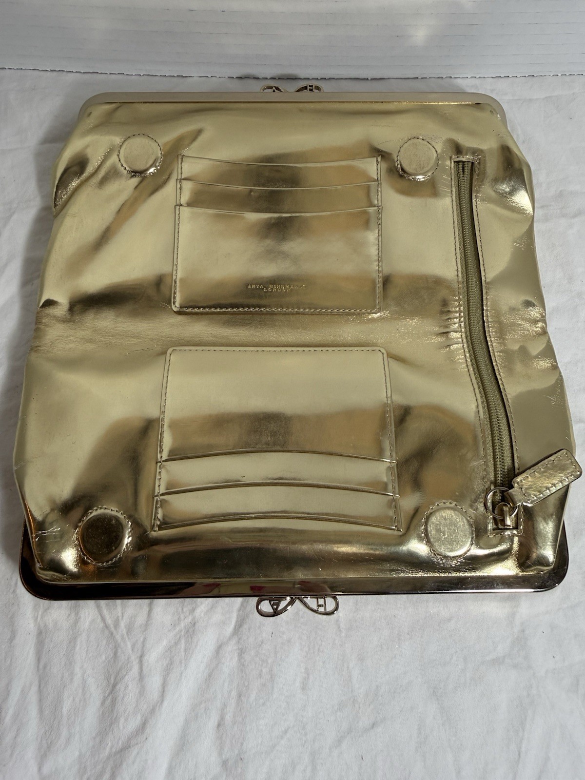 как выглядит Anya Hindmarch London Gold Clutch Purse фото