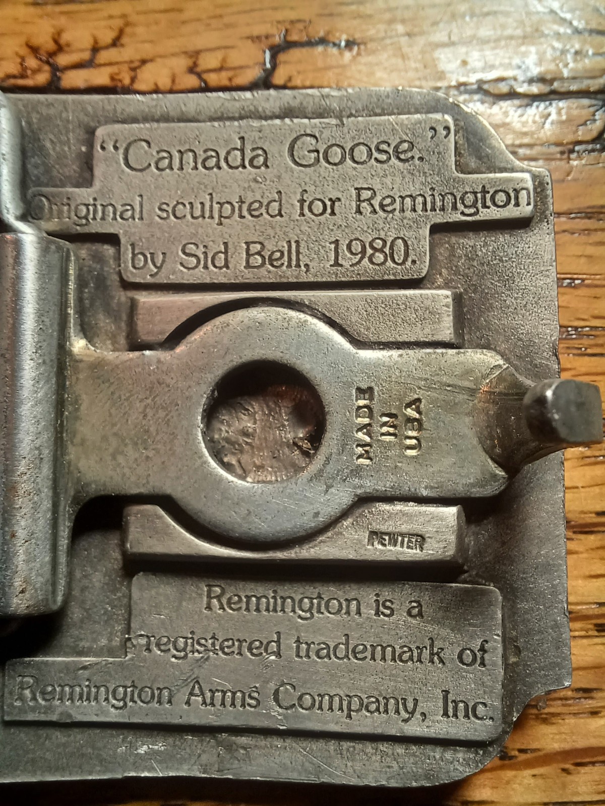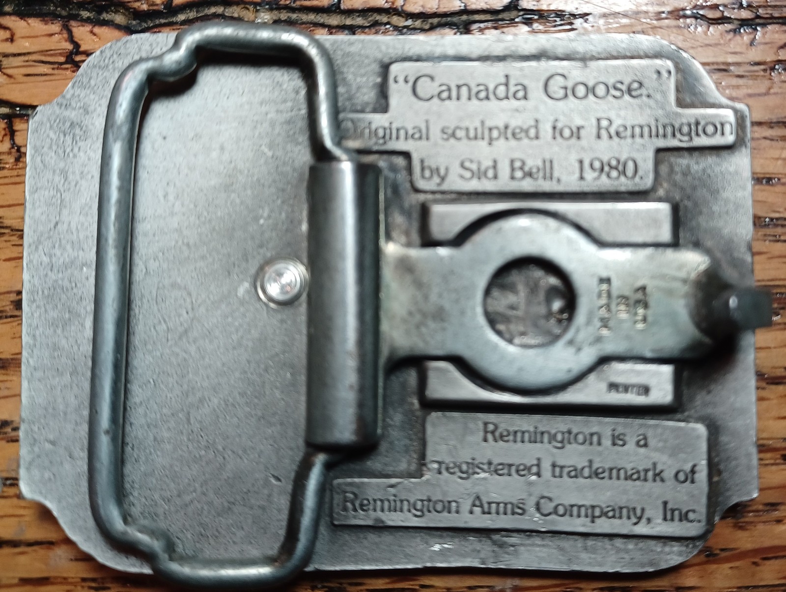 VTG Remington 'FIRST IN THE FIELD' Belt Buckle Gold Tone Canada Goose - 1980