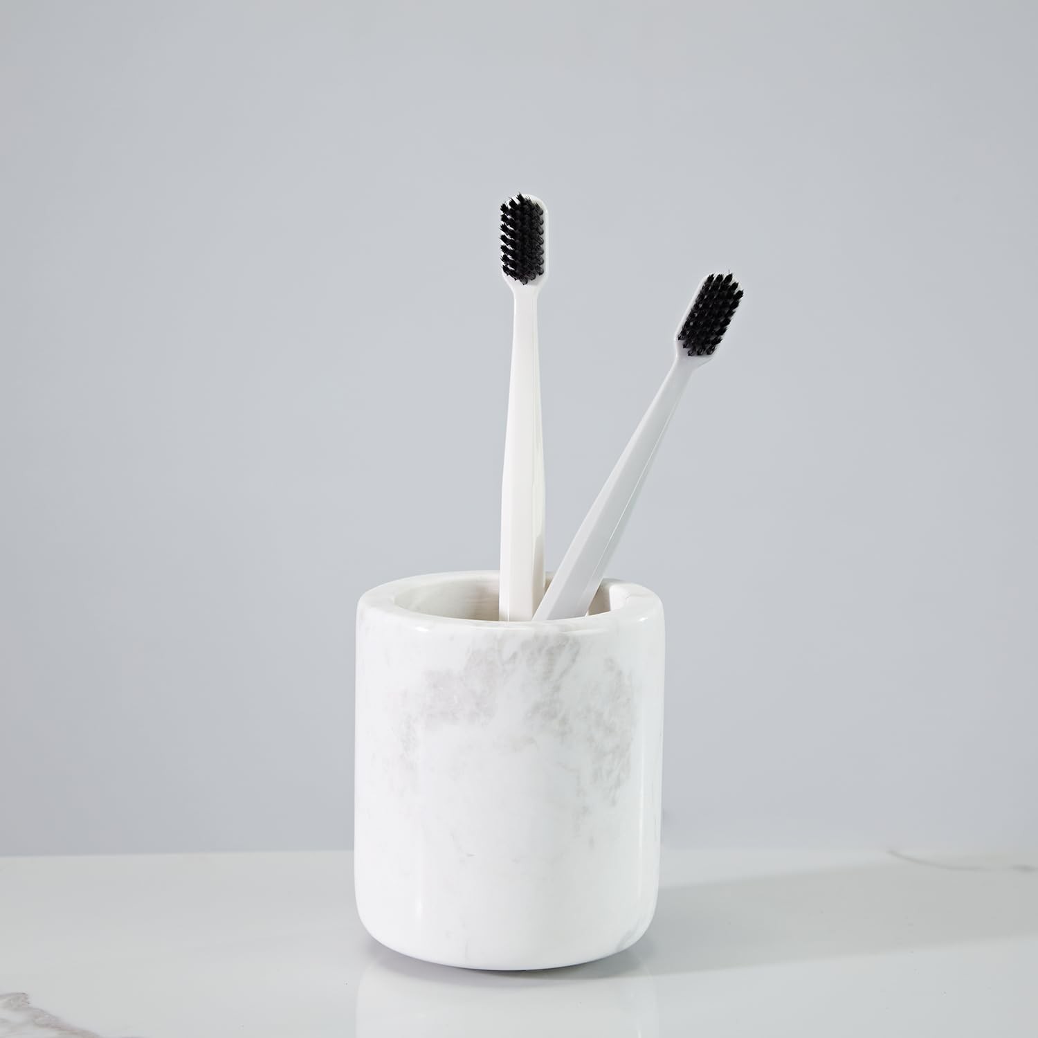 White Marble Toothbrush Holder for Bathroom, Natural Organic White Marble Too...