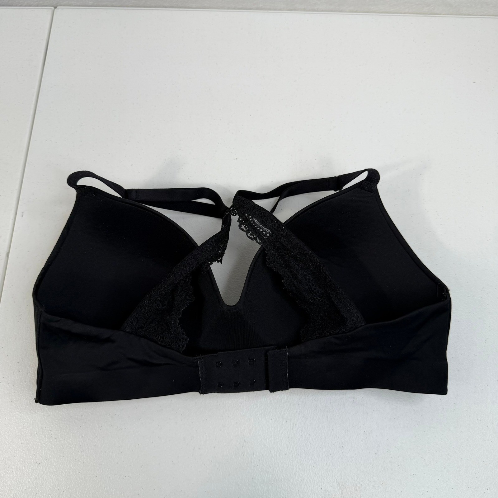 Soma 34C Enbliss Luxe Wireless Bra with Lace Back J Hook Black Padded Contour