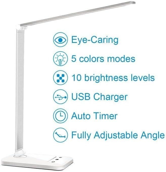 LED Desk Lamp Dimmable Table Lamp Reading Lamp with USB Charging Port, 5 Ligh...