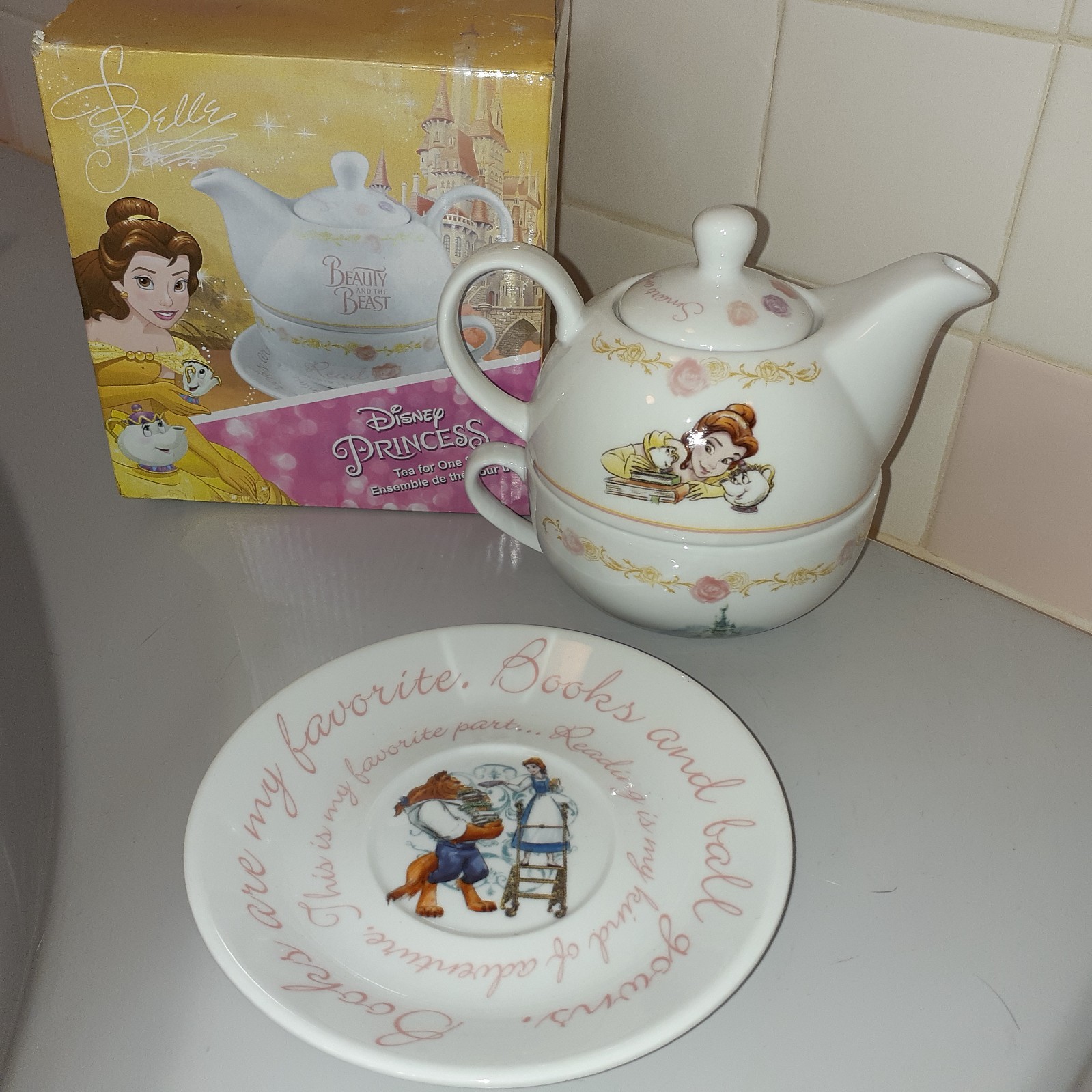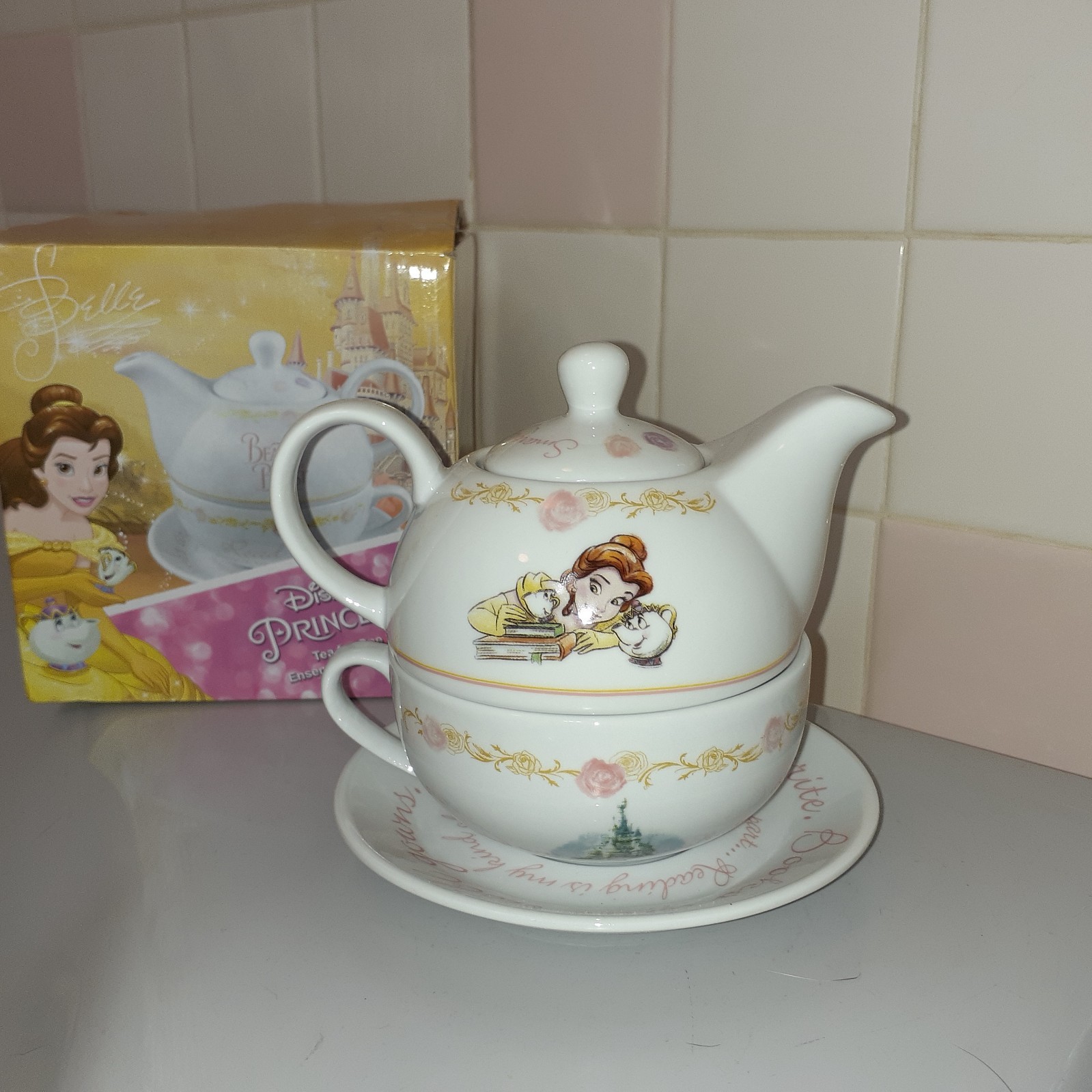 Beautiful Disney Princess Ceramic Tea for One Set Beauty The Beast with Box