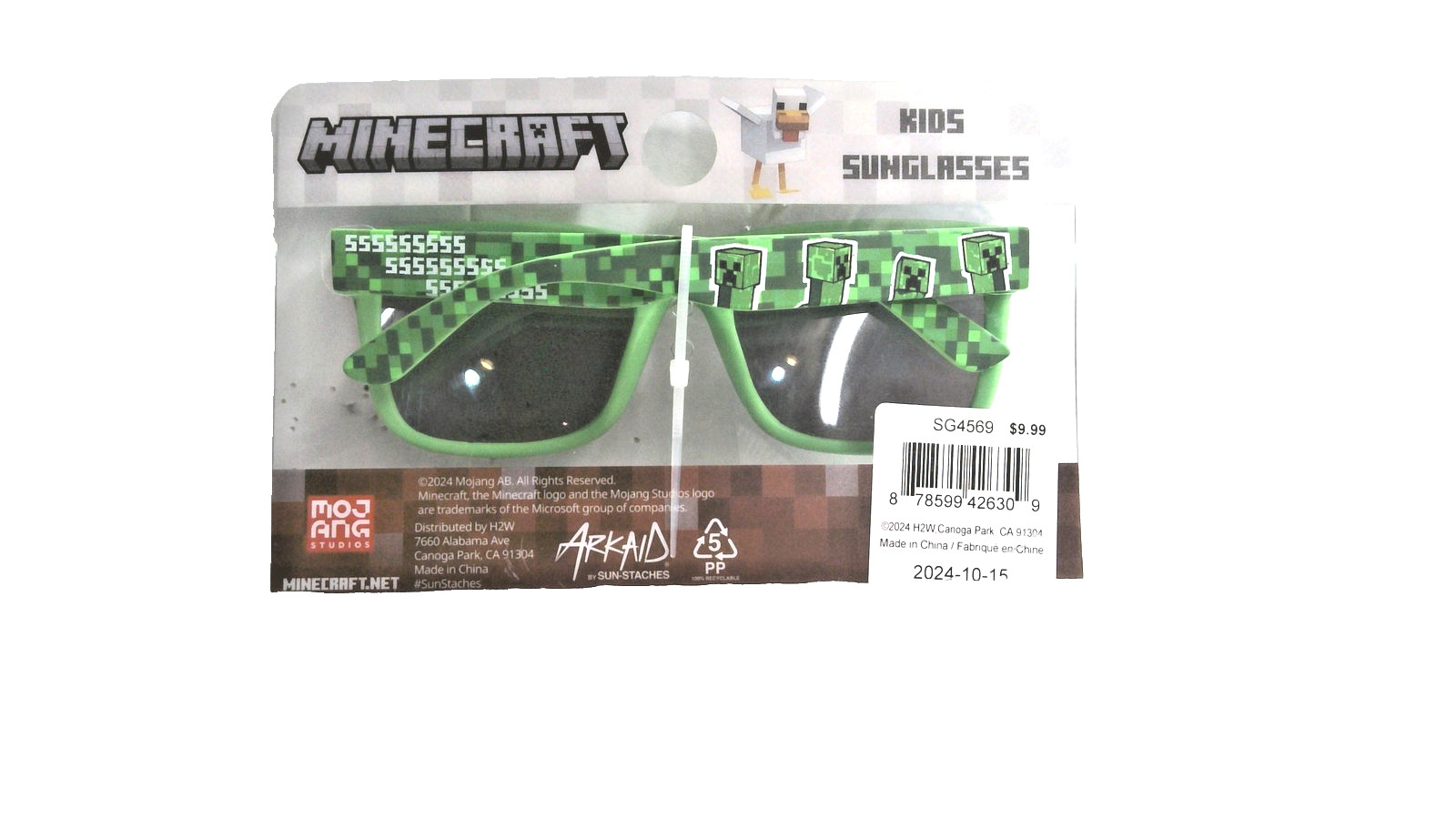 Minecraft Kids Sunglasses Boys Green Pixel Square UV400 Tinted Plastic Creeper