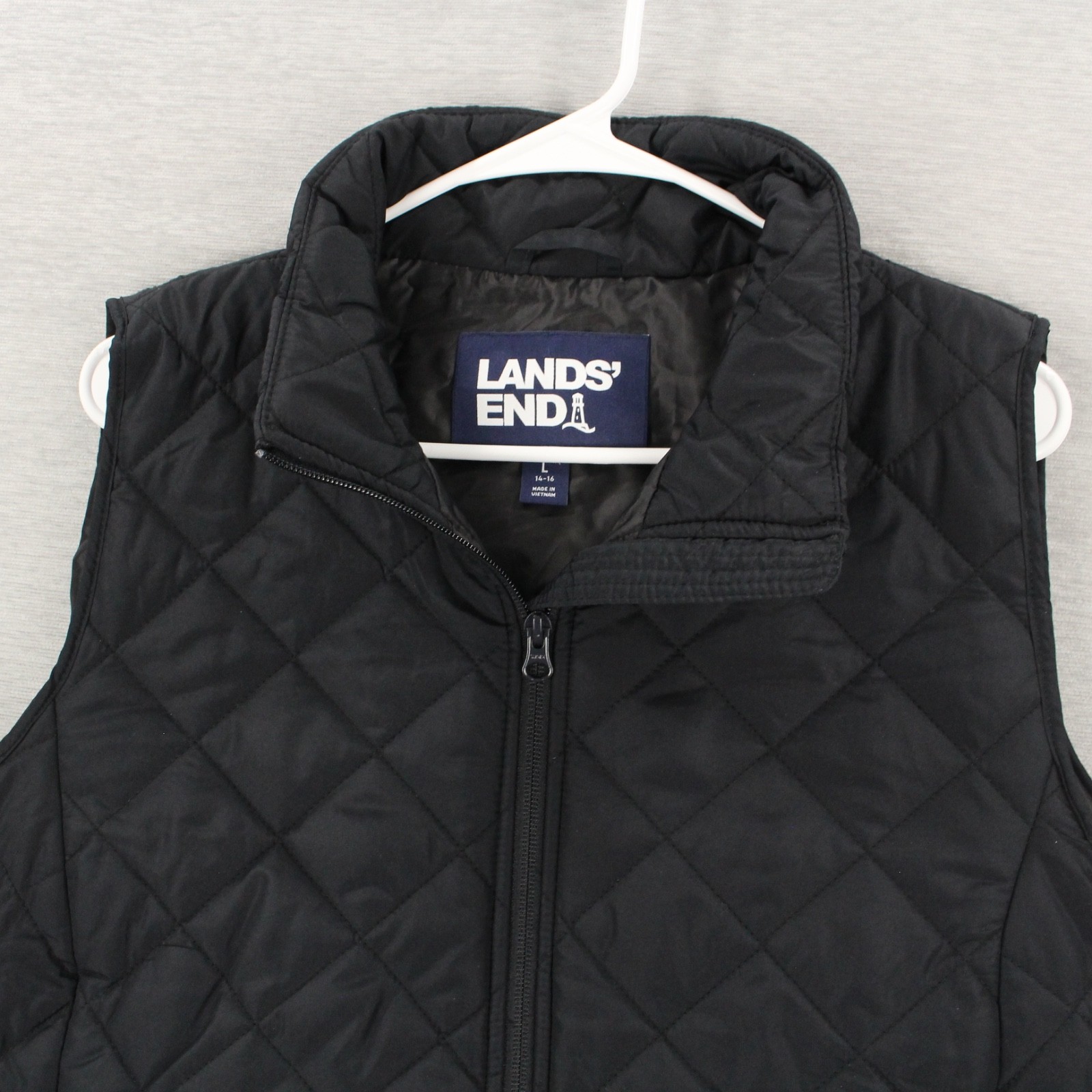 как выглядит Lands End Featherfree Insulated Quilted Vest Womens Size Large 14-16 Black Poly фото