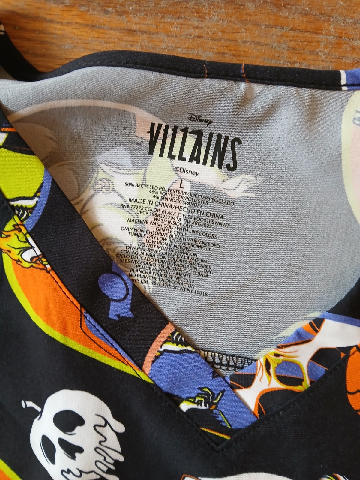 NWOT Women's Disney's Villains Scrub Top With Pockets Size L