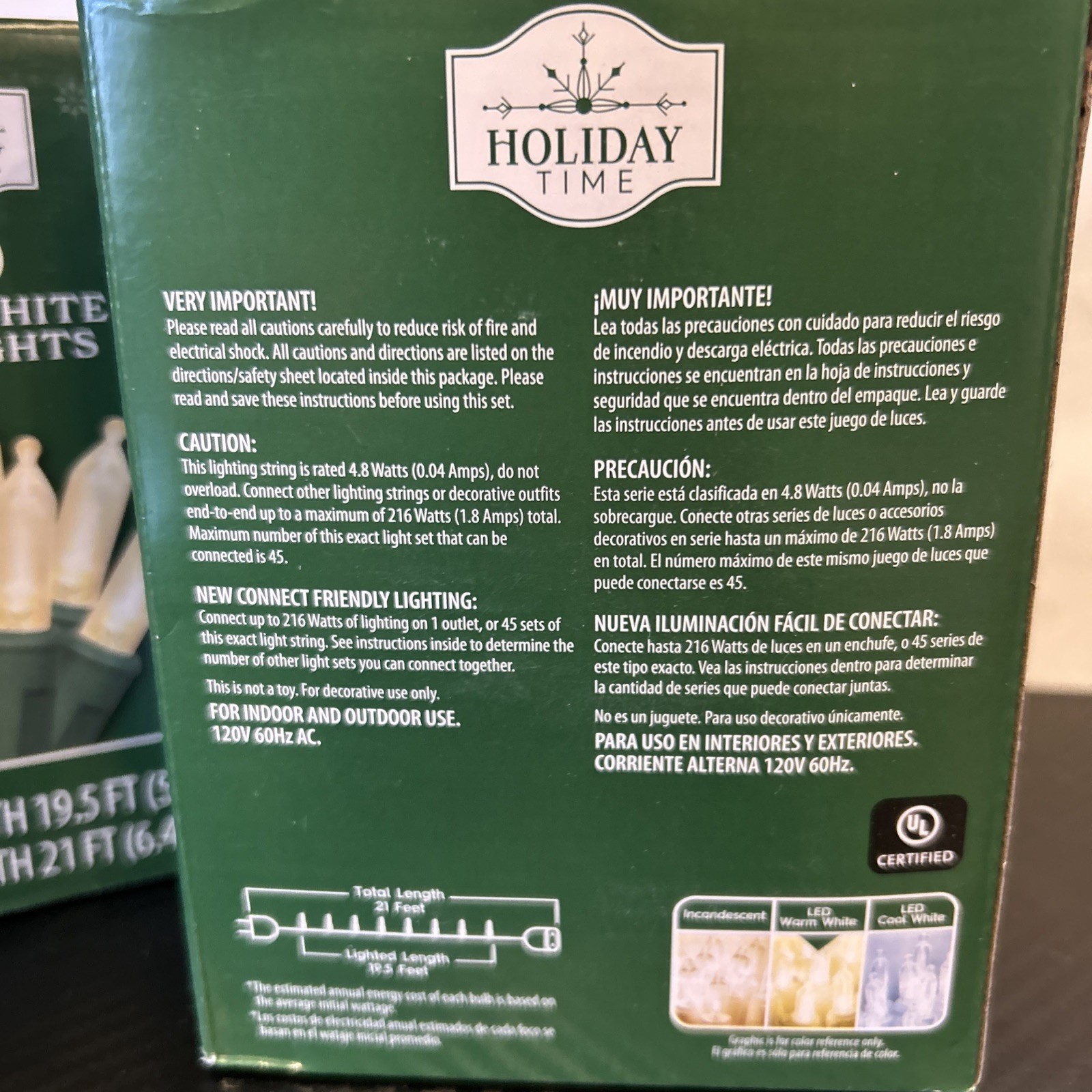 2pack 100-Count LED Mini Christmas String Lights, Warm White, 19.5' Holiday Time