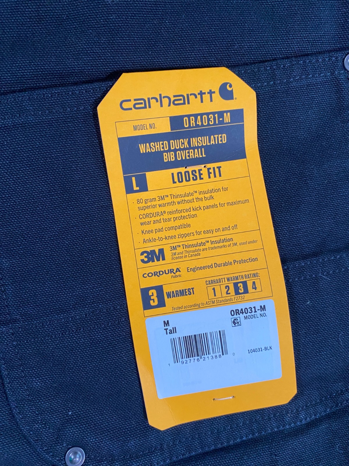 как выглядит Carhartt Mens Loose Fit Washed Duck Insulated Bib Overall Black - New - Size M фото