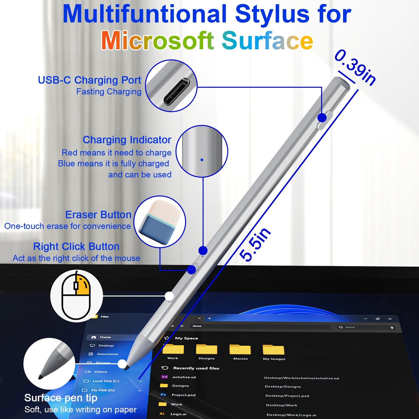 Surface Pen - Surface Pro Pen Stylus for Microsoft Surface Pro 11/9/10/8/X/7/...