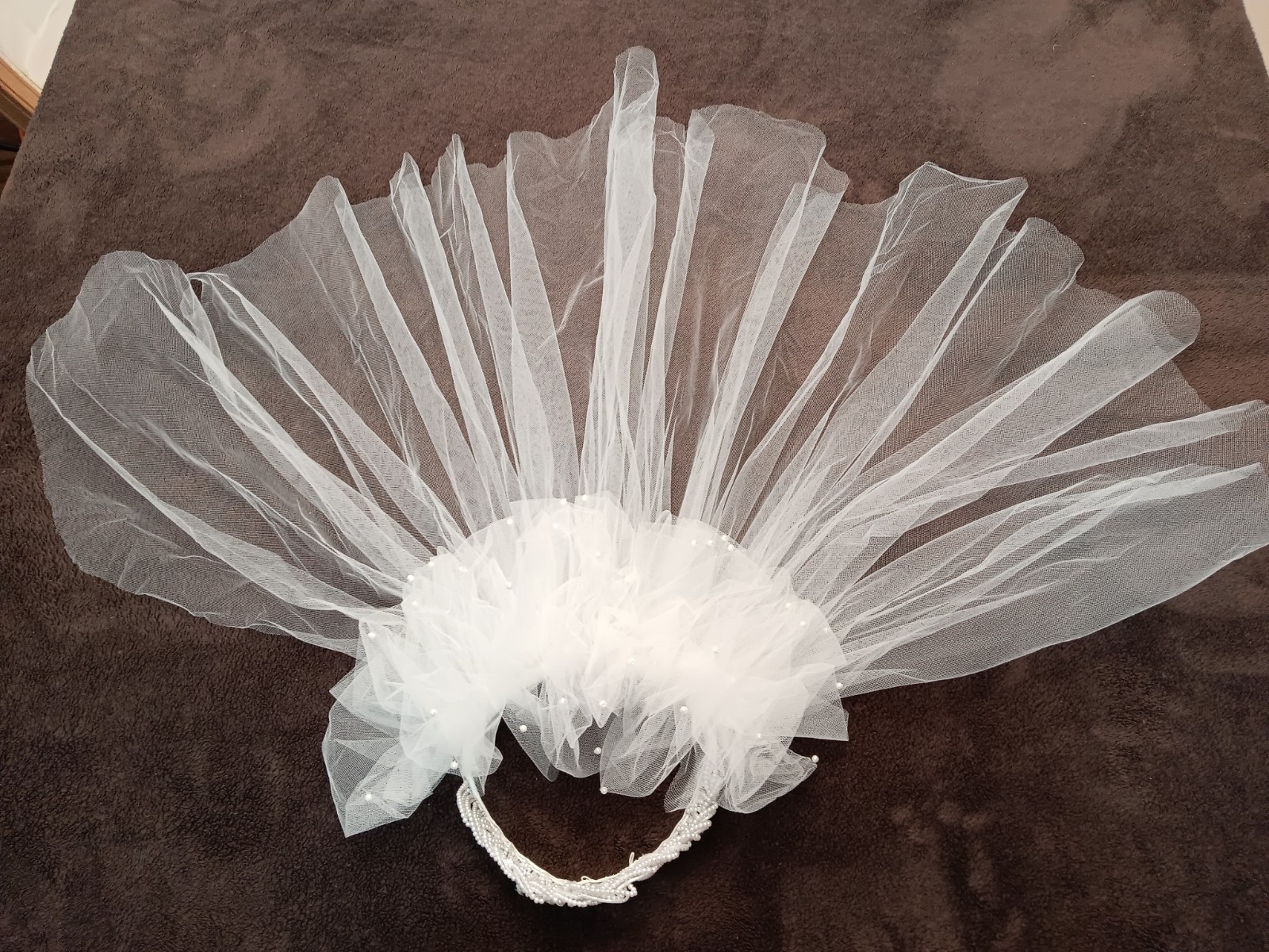 Vintage 1920s-Style White Tulle Bridal Crown/Communion Headpiece Veil/Pearls 17
