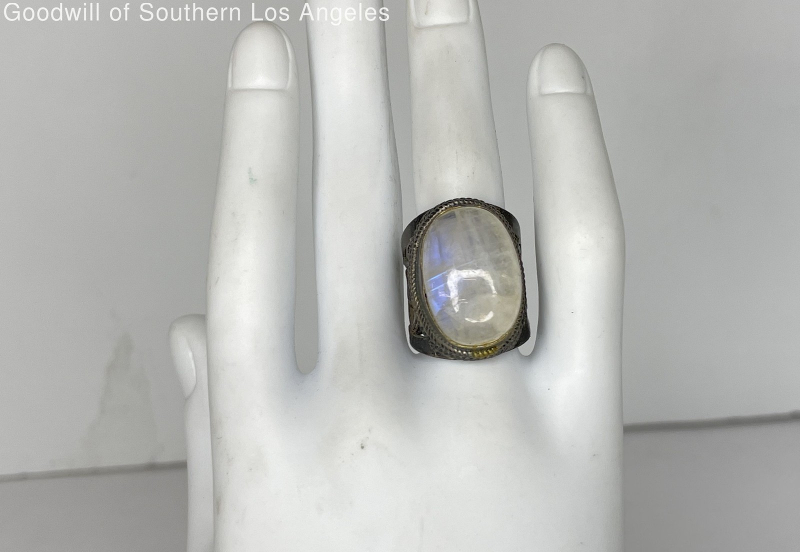 как выглядит Oval Moonstone 925 Sterling Silver Filigree Band - 10.7g фото