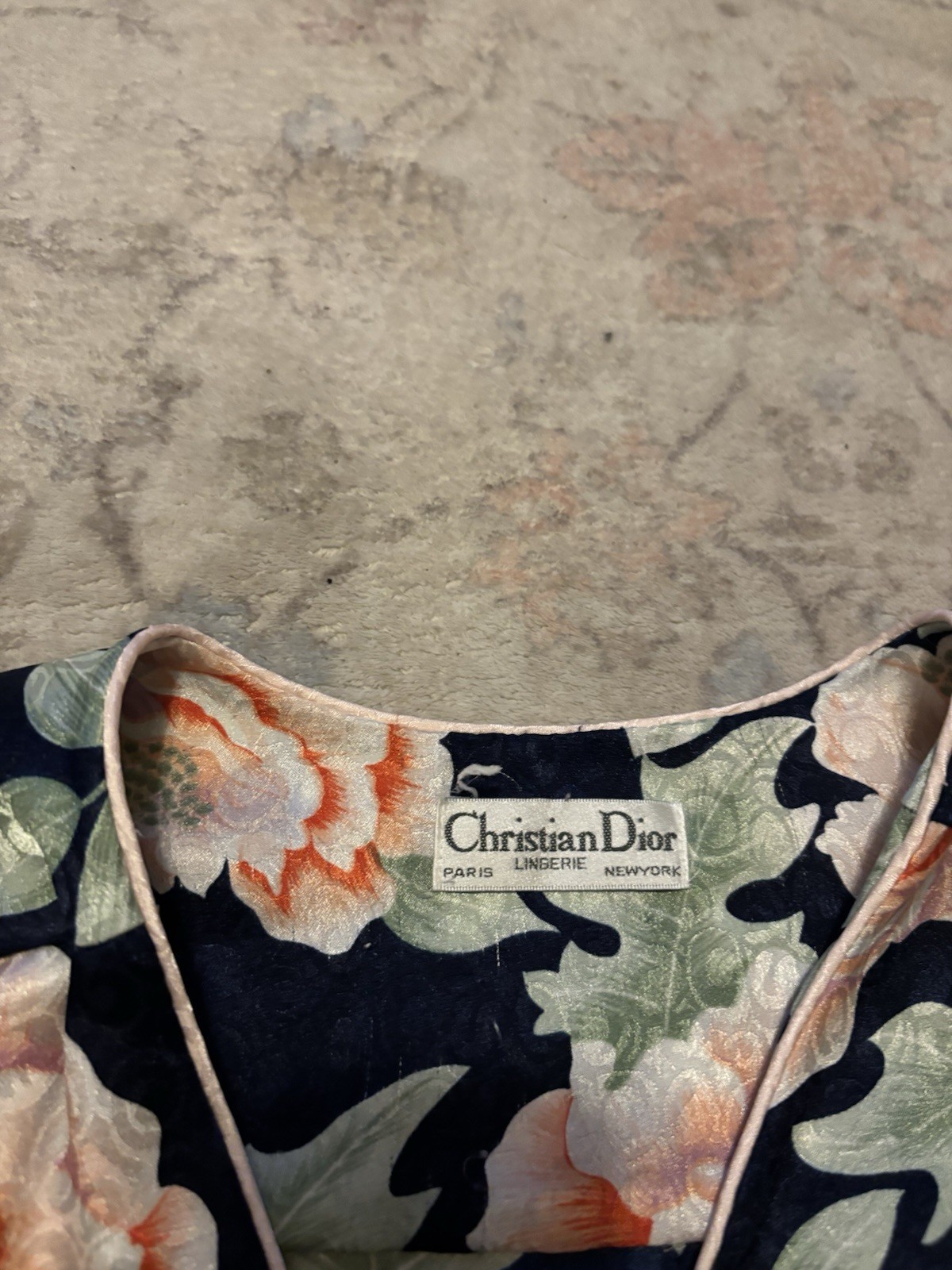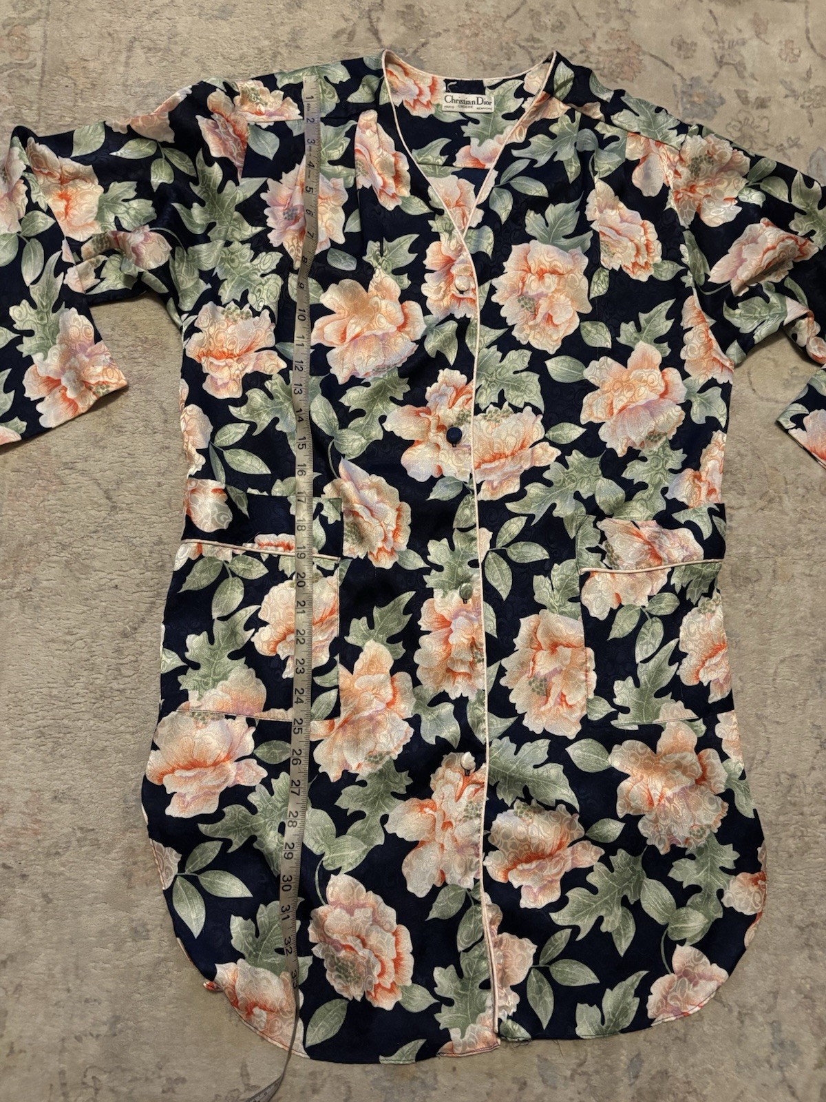 как выглядит EUC Women s Vintage Floral CHRISTIAN DIOR LINGERIE Robe Nightgown POCKETS фото