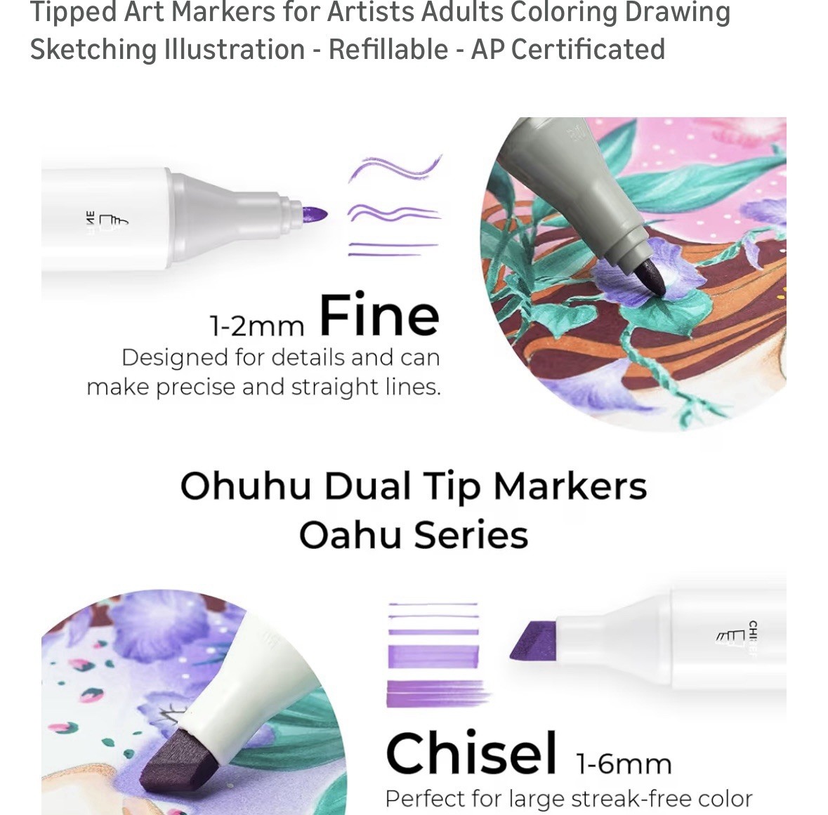Ohuhu Alcohol Markers 320 Colors Chisel Fine Double Tipped Art Markers